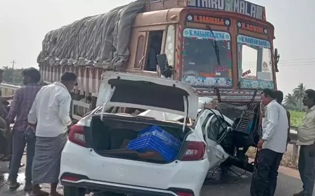 Anantapur: Six persons died in a road accident near Nayanapalli cross roads in Singanamala mandal of Anantapur district on Saturday. The mishap occurred when a car lost control due to tyre burst and collided with the lorry.