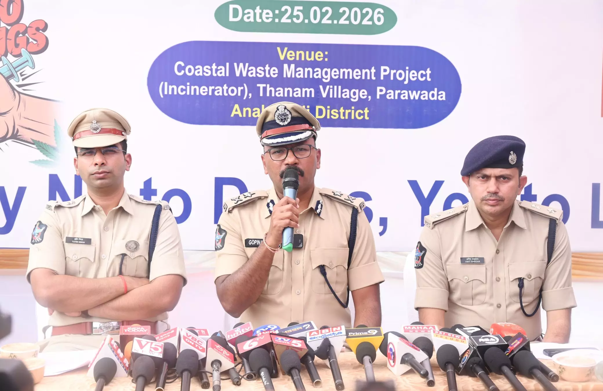 Visakhapatnam Range IG Gopinath Jetti said Andhra Pradesh has intensified its anti-narcotics operations, seizing over 55,000 kg of cannabis, registering 976 cases and arresting 2,405 persons. So far, 95 offenders have been convicted. Assets worth ₹9.19 crore were attached from 14 repeat offenders, and illegal cultivation spread over 7,500 acres has been eliminated, he said.