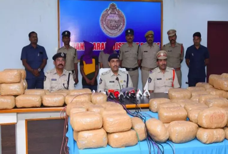 The Police officials said, "Two individuals have been arrested while attempting to smuggle ganja from Odisha to Kerala. The arrests were made by the L. Kota police in the Vizianagaram district, Andhra Pradesh."