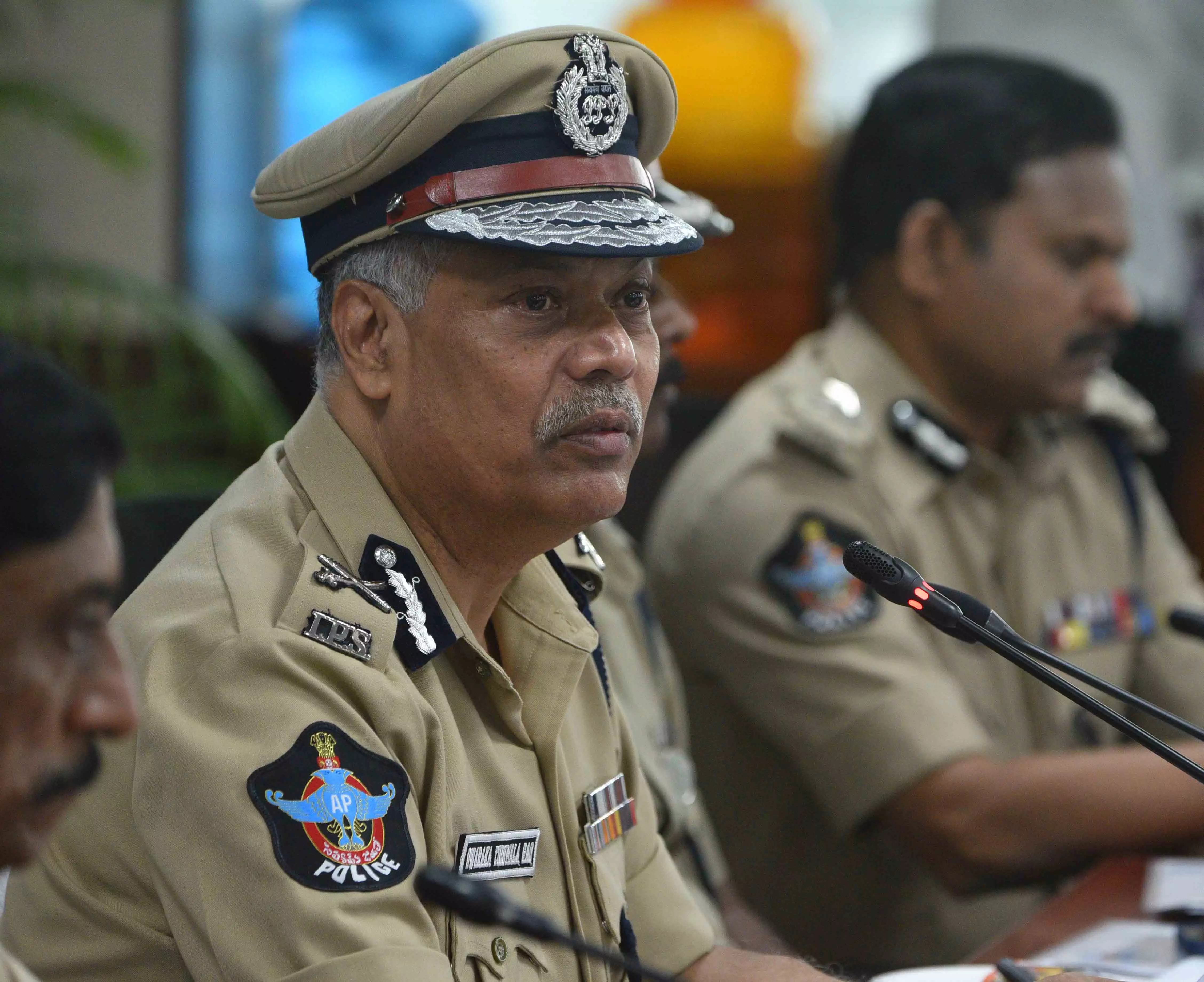 Director General of Police Ch D Tirumala Rao addresses the media at the police headquarters near Mangalagiri in Guntur district on Friday. Photo BY ARRANGEMENT.