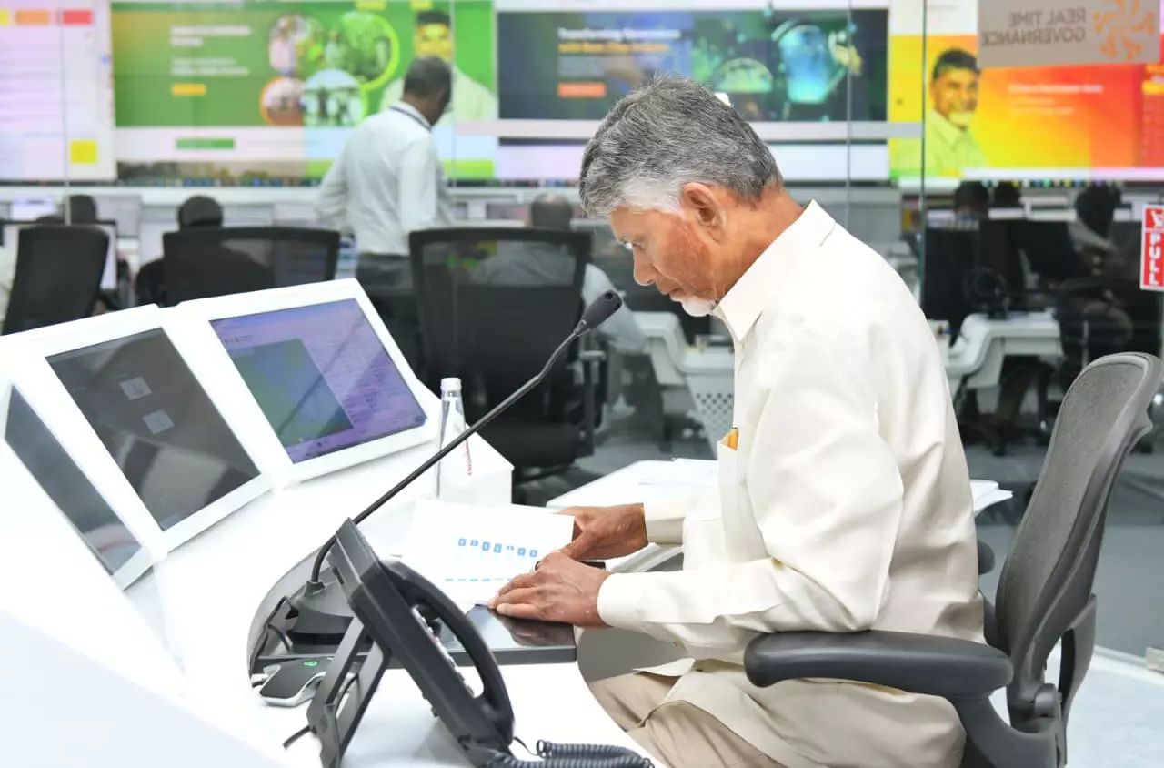 Chief Minister N Chandrababu Naidu conducting a review meeting the performance of various government departments and the civic services provided at the RTGS center at the Secretariat on Tuesday, Photo BY ARRANGEMENT