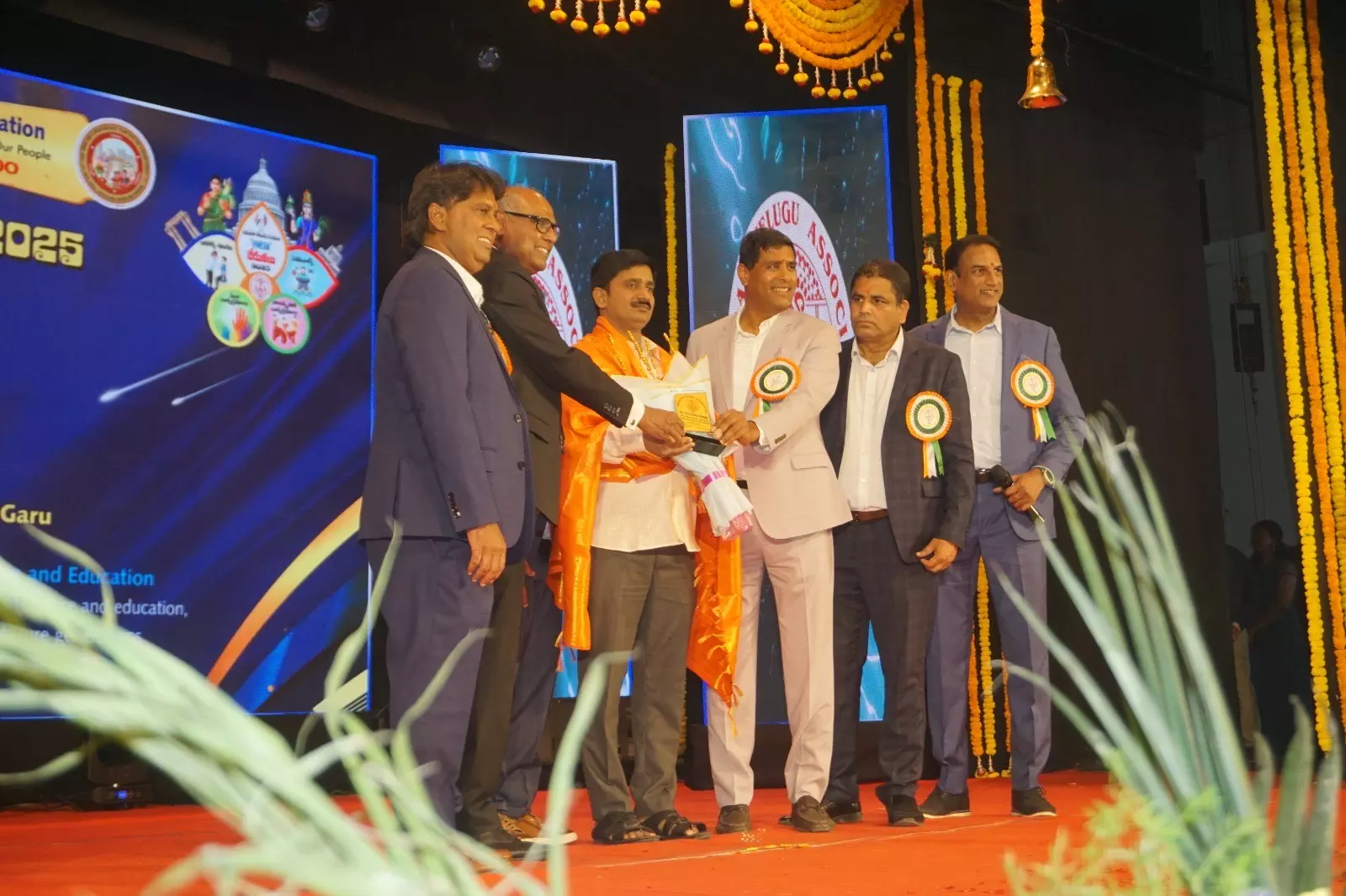 He received the award on Saturday during the ATA celebrations held at Ravindra Bharathi in Hyderabad. The award was presented by ATA president Challa Jayanth, along with board members Satish Reddy, Mudireddy, Srikanth, Sainath and others.