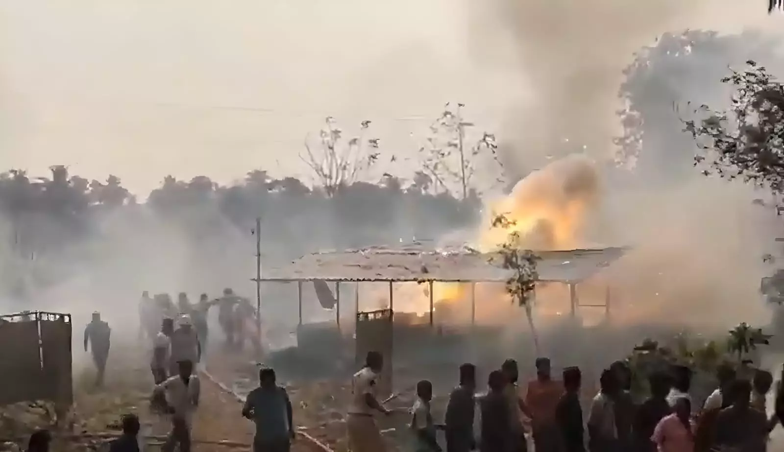 Upon receiving the information, the fire department personnel are trying to douse the fire with the help of two fire engines. Eight people were seriously injured and taken to the hospital by ambulance. The intensity of the explosion was so strong that the bodies were flung into nearby paddy fields, a police official said.