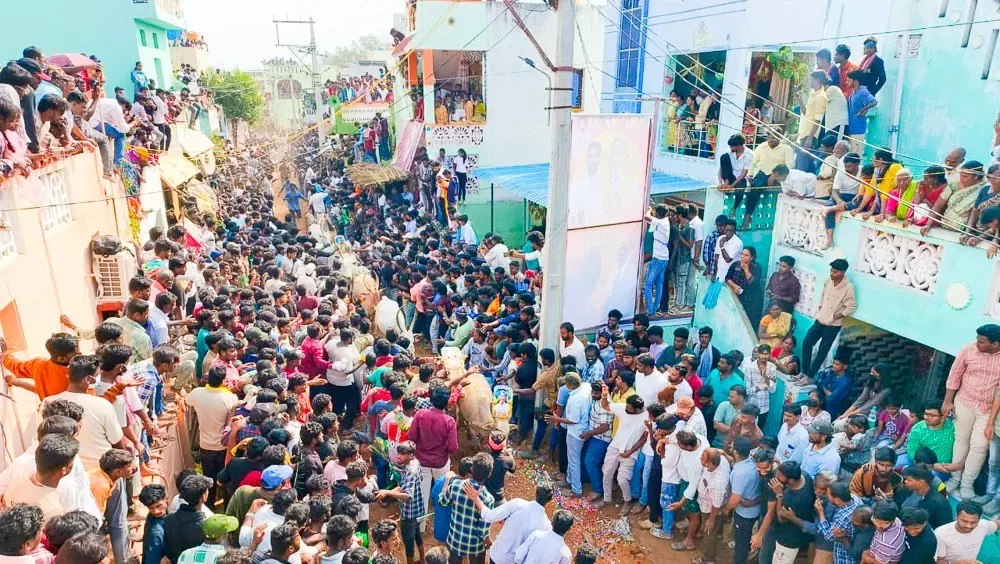 As drumbeats echoed through the streets, around 50 to 60 bulls were released one after another into the narrow village lanes. Thousands of spectators lined the roads to watch the runs, while young men from nearby villages, along with participants from Tamil Nadu, Karnataka and Telangana, took part in the bull-taming sport. Locals often compare the event to Tamil Nadu’s Jallikattu, though they describe Pasuvula Panduga as a simpler form shaped by local customs of the erstwhile Chittoor district.