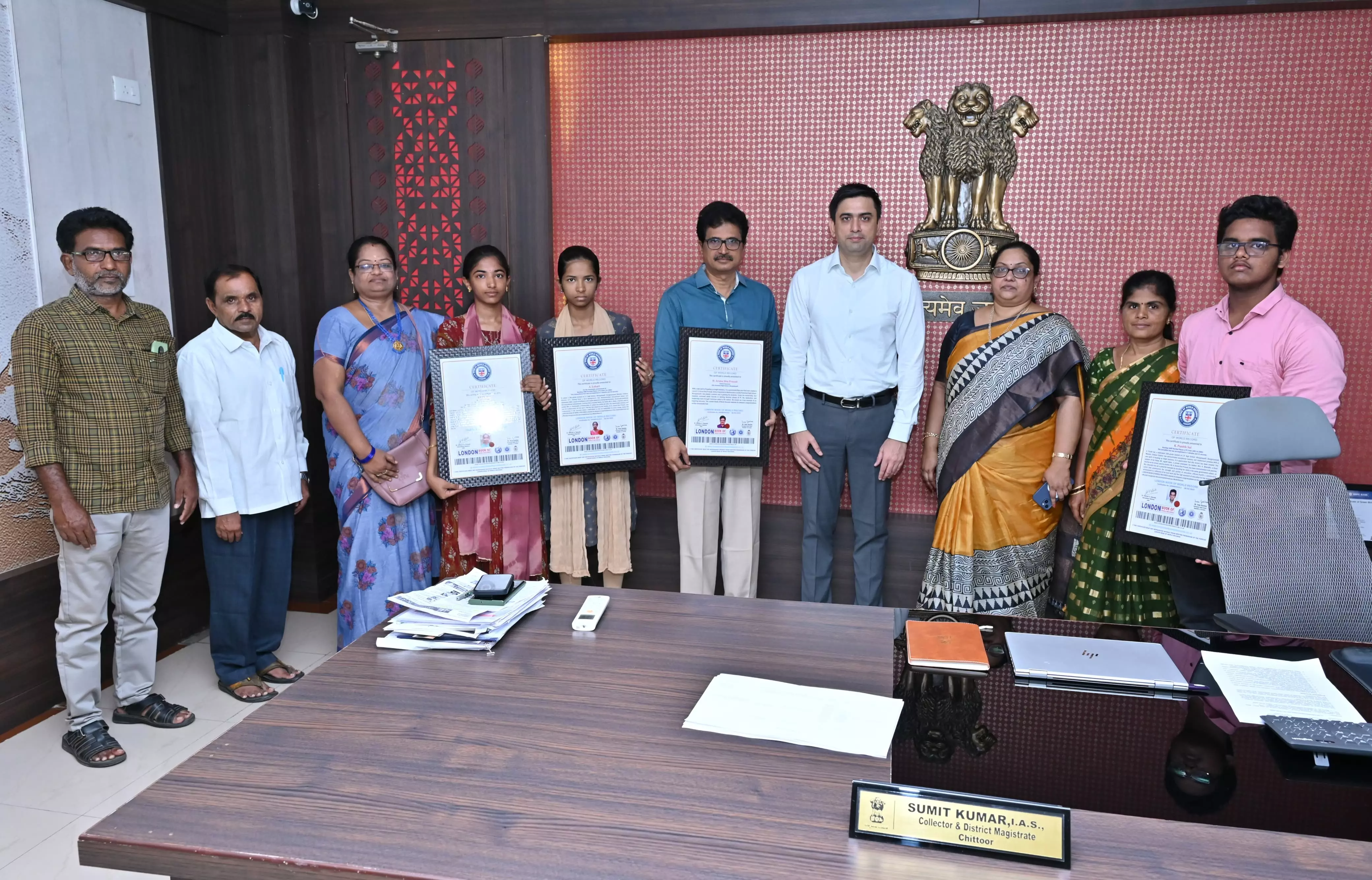 The students, all from the Zilla Parishad High School, Mangalapalli in Bangarupalem mandal, met district collector Sumit Kumar in his chamber on Wednesday. The students were accompanied by their mathematics teacher and mentor Aruna Shivaprasad, who also received a special mention in the records for his guidance.