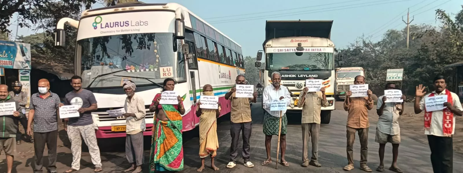 The protest saw participation from CITU members and villagers, including Srinivasa Rao, Appala Narasamma, Chinna, Fatima Begum and several others, all pressing for immediate action against the coal-dust-laden trucks.