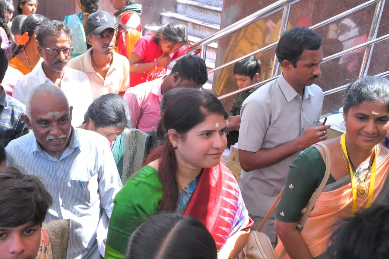 KURNOOL: Nandyal district collector G. Rajakumari joined devotees in the free queue line at the renowned Srisailam Temple during the ongoing Brahmotsavams and reviewed arrangements for pilgrims.