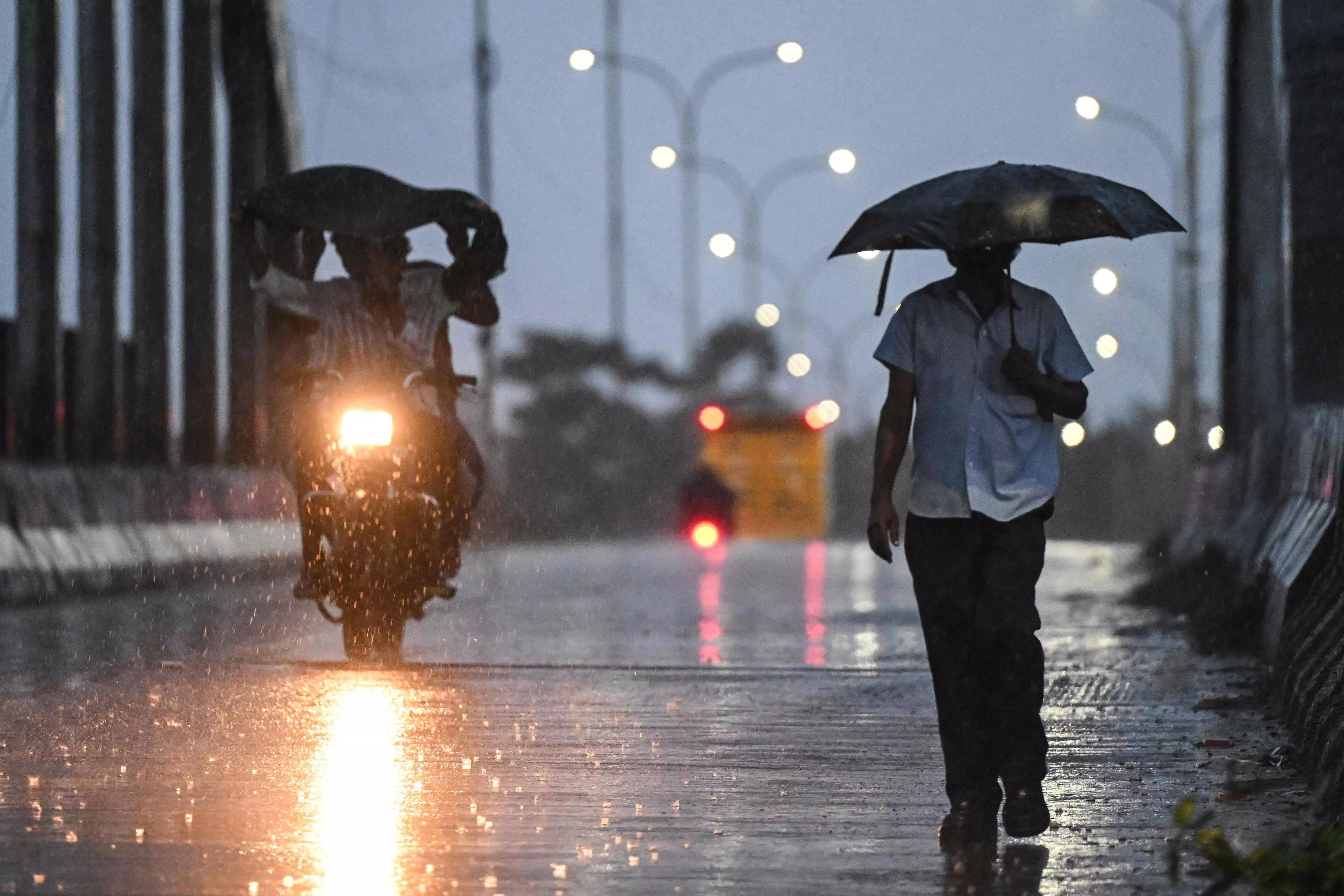 A pedestrian carries an umbrella during rainfall ahead of Cyclone Ditwah's landfall, in Chennai on November 29, 2025. Cyclone Ditwah moved away from the Sri Lanka on November 29 and was heading towards neighbouring India to the north. India's Chennai Airport has cancelled 54 flights in view of the cyclone's approach, with the weather department forecasting extremely heavy rainfall and strong winds over the next 48 hours.
