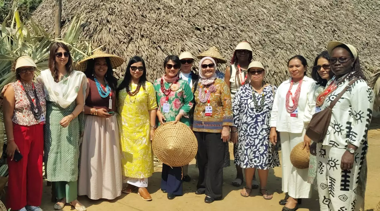 Around 50 foreign delegates accompanied by Shashi Tripathi, wife of chief of naval staff Dinesh K Tripathi and Priya Bhalla, wife of Eastern Naval Command Chief Sanjay Bhalla visited the Pinagadi Sankalp arts village where they were shown the folk arts, use of natural dyes in handlooms, traditional grinding of pulses and domestic utensils made of brass and other alloys under use from centuries.