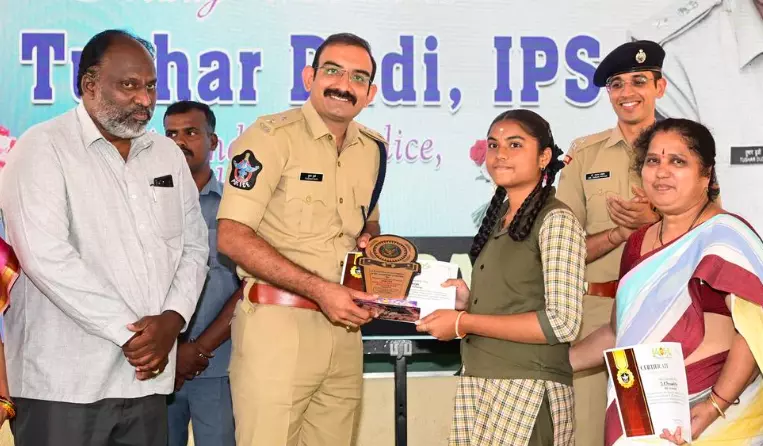Dr Tharun highlighted the need for cooperation between police and students and asked them to share information on suspicious or unlawful activities to help prevent crime. Prizes and certificates were distributed to students who excelled in awareness tests.