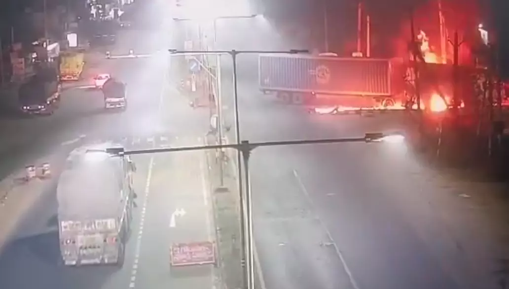 Driver Burnt Alive As Container Vehicle Catches Fire After Crash Near Kathipudi