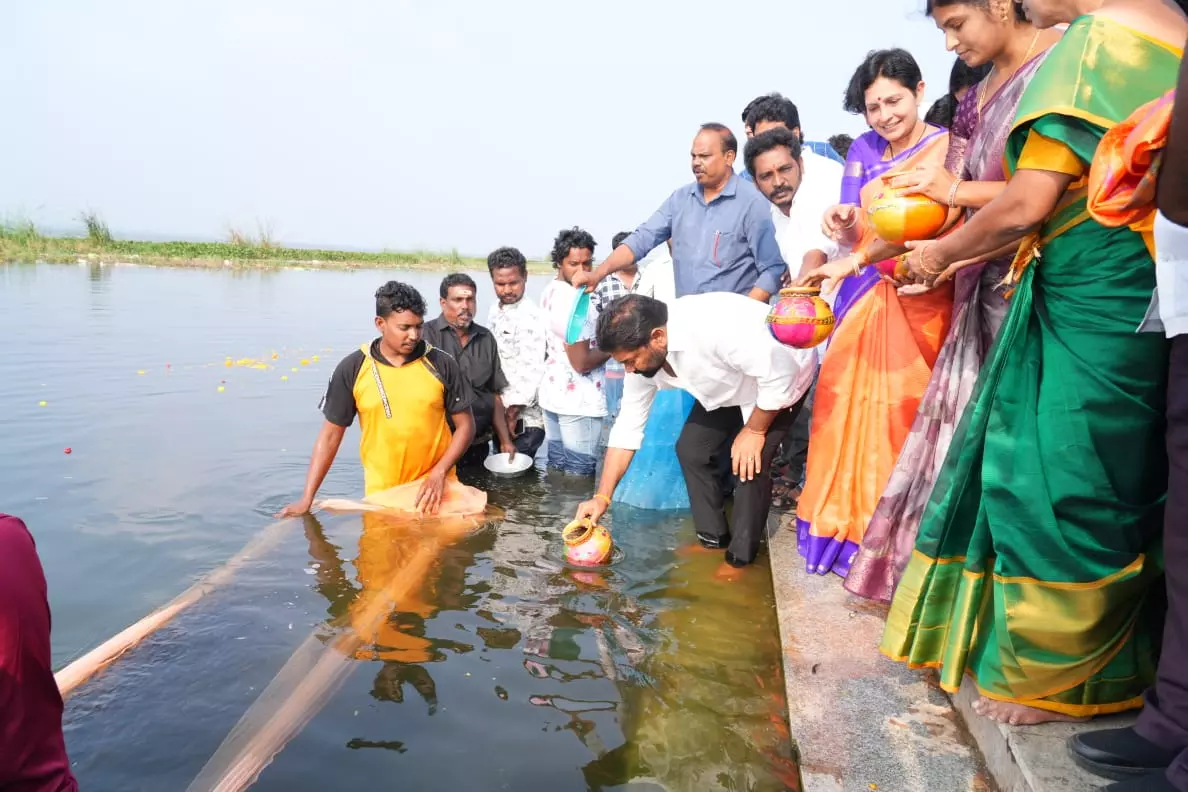 Giridhar Reddy said fishery development activities had been stepped up after the coalition government took charge. While 8 lakh fish seedlings were released into Swarnala Cheruvu last year, plans have been made to release 13 lakh seedlings this year. As part of the first phase, 5 lakh seedlings were released on Tuesday.