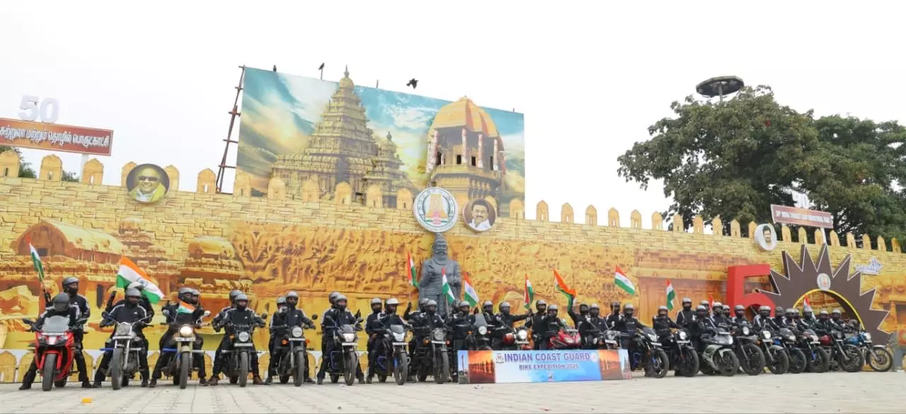 The route passed through key coastal spots including Kakinada, Vijayawada, Nizampatnam, Krishnapatnam, Mandapam, Karaikal and Puducherry, with 50 coast guard riders participating under Coast Guard Region (East), Chennai.