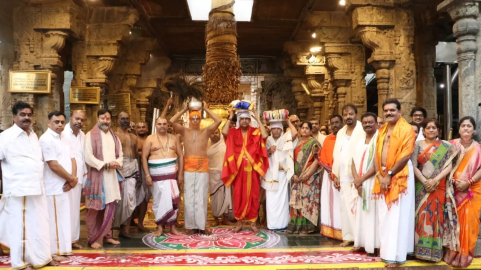 The mixture was prepared by diluting Namakommu, Srichurnam, turmeric, Kichiligadda, camphor, sandalwood powder and kumkum along with other fragrant substances in water. The solution was then sprinkled throughout the temple as part of the cleansing ritual. After the process was completed, the cloth covering the Moolavirat was removed and special pujas and Naivedyam were offered according to Agama procedures. Devotees were later allowed for darshan.