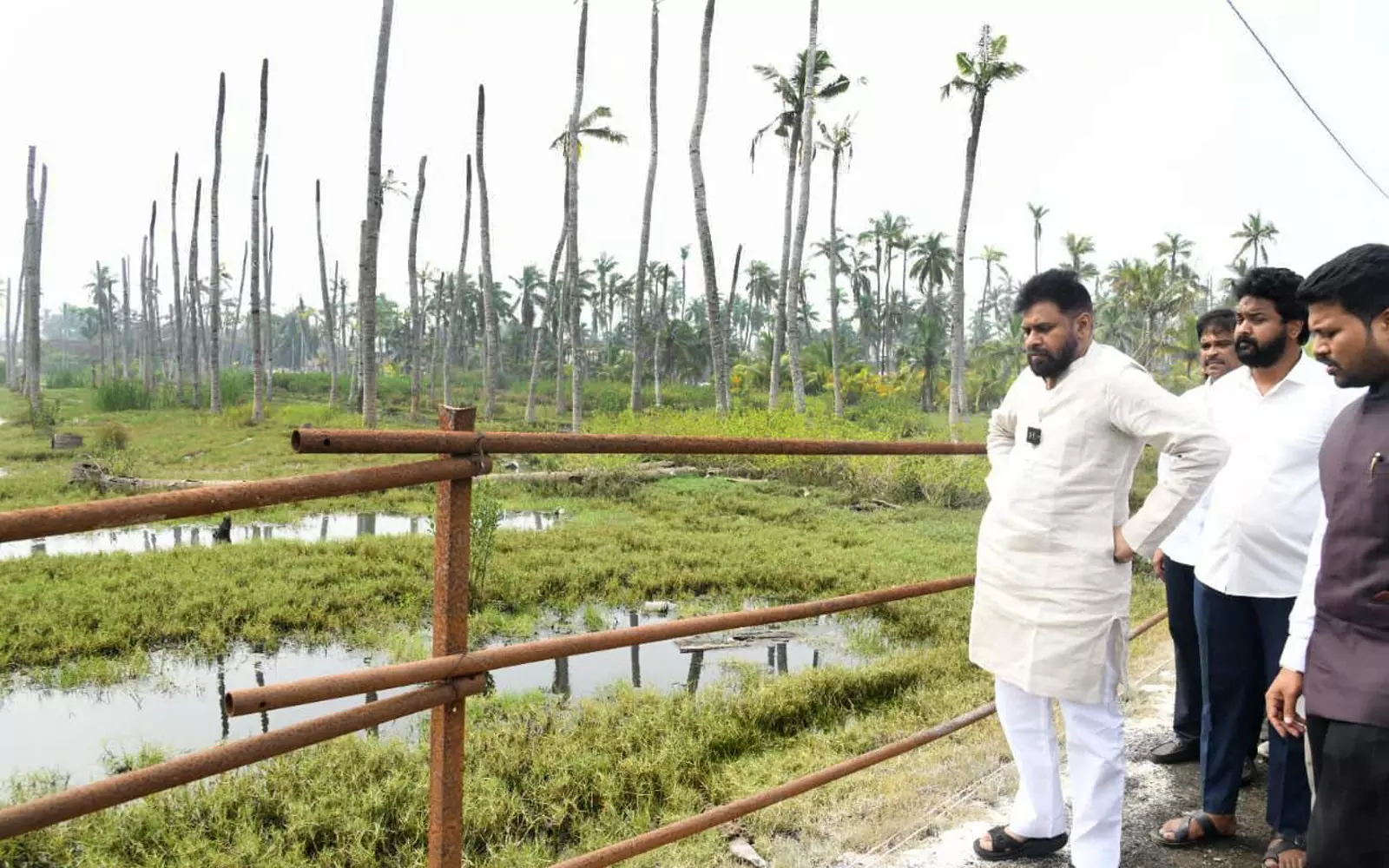 Pawan enquired with district officials about the reasons for damage to the coconut plantations. He also sought details of the Sankaraguptam drain as to how long it was existing when the problem cropped up, and whether there were any encroachments.