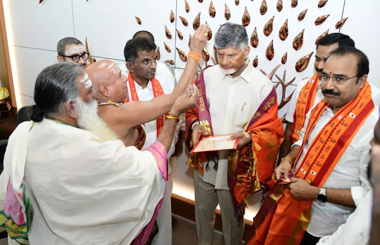 The delegation presented the Chief Minister with a portrait of the presiding deity and prasadam. Temple priests offered Vedic chants and blessings during the meeting. The MLA and temple board members briefed the Chief Minister on the arrangements being made for the Brahmotsavams.