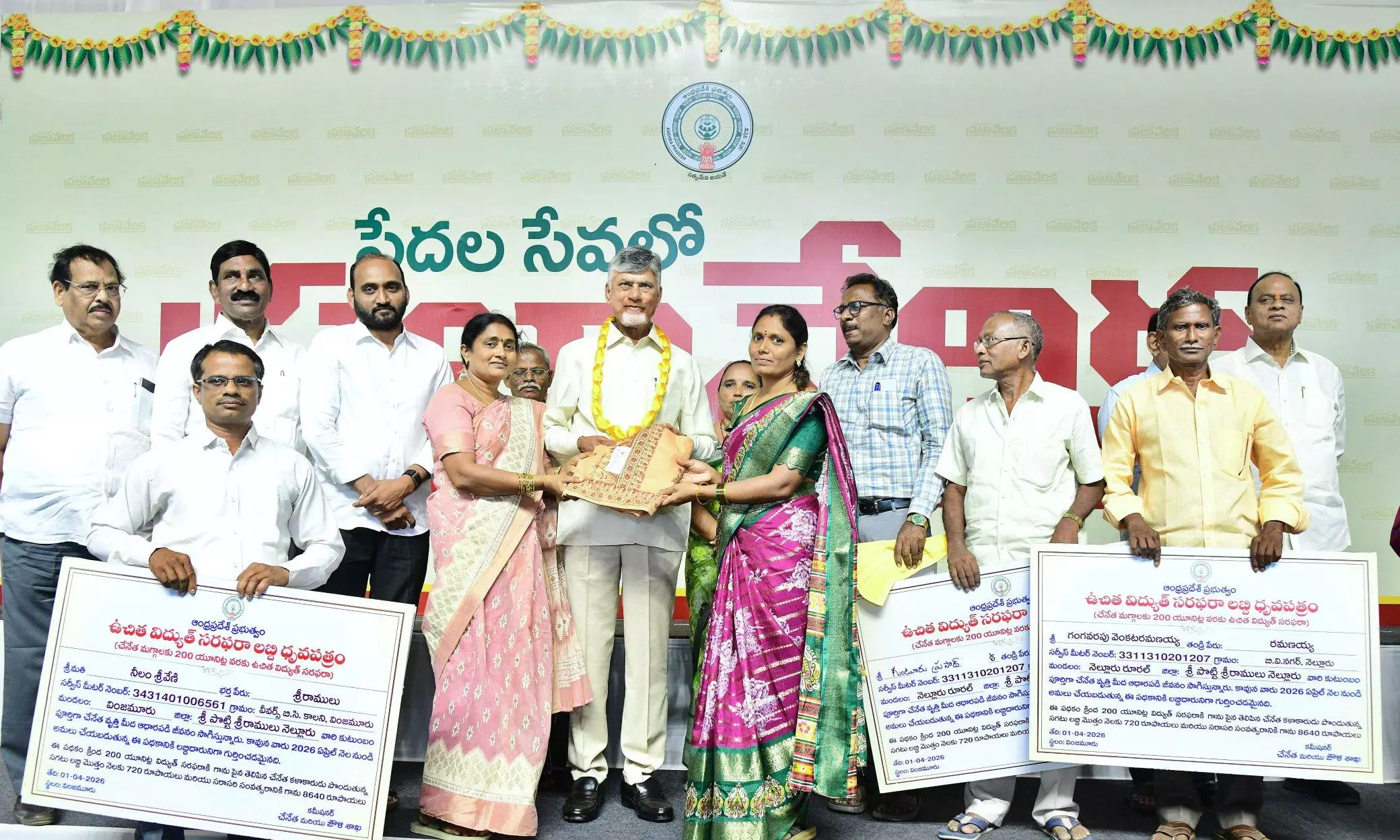 Nellore: Fulfilling a key election promise, Chief Minister N. Chandrababu Naidu announced free electricity for weavers—up to 200 units for 93,000 handloom families and 500 units for over 11,000 power looms—costing the state exchequer Rs 153 crore annually.