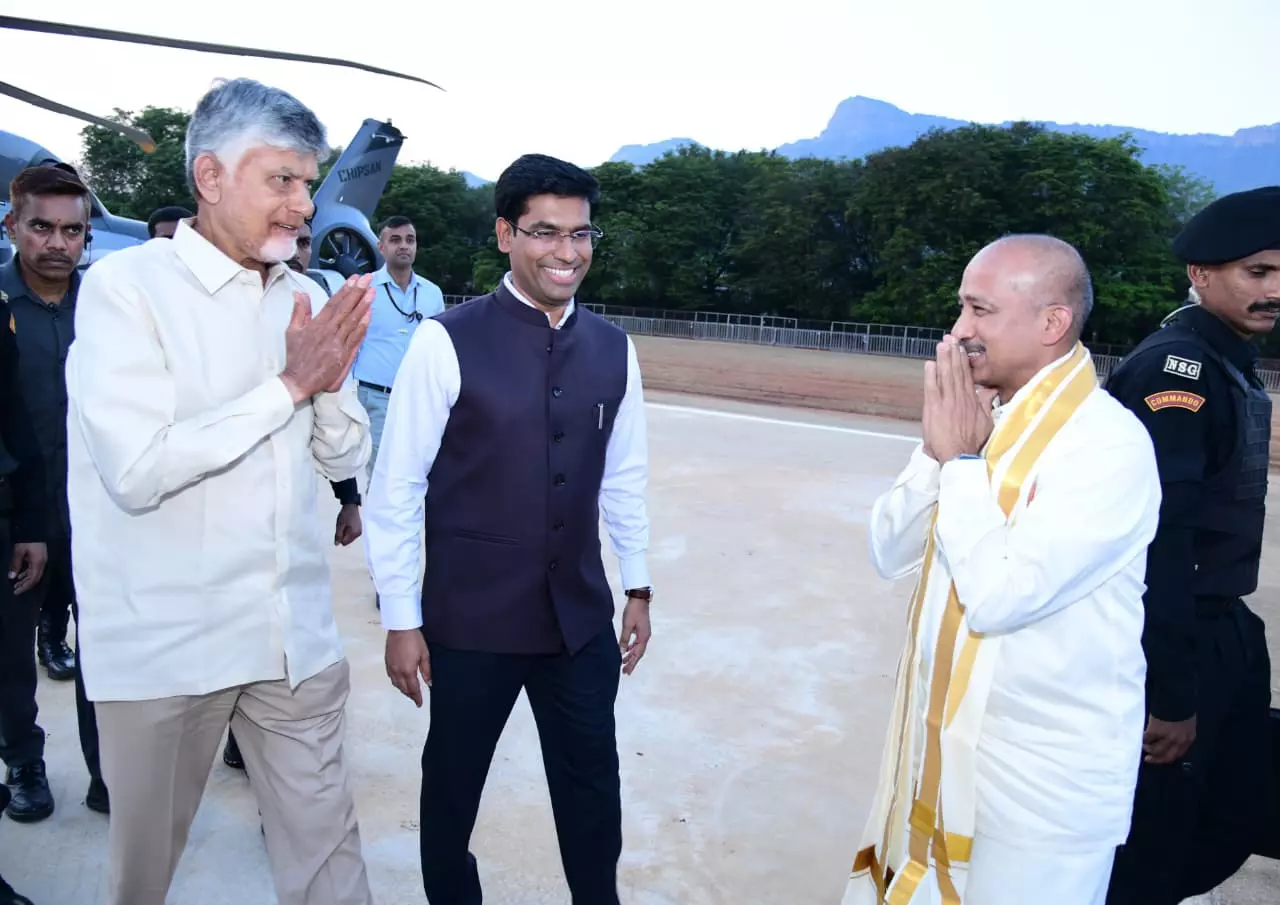 Naidu was received by ministers, public representatives and officials at the helipad at Sri Venkateswara Agricultural College. He later travelled by road to Tirumala and reached Gayatri Nilayam, where he would stay overnight.