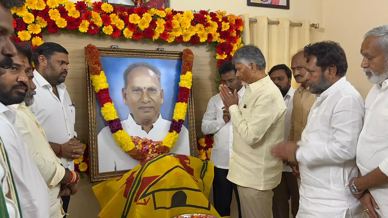 Naidu Pays Floral Tribute to NTR Raju in Tirupati