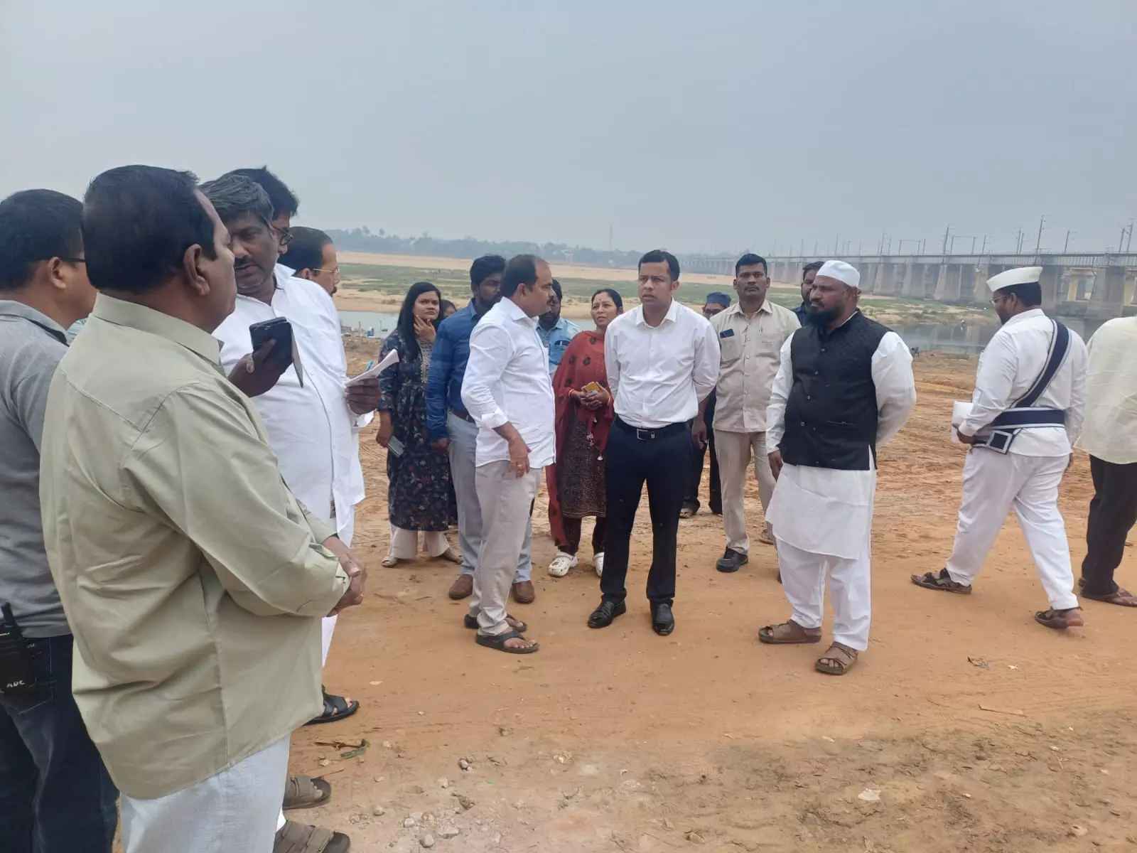 In preparation, the riverfront area near Tikkana Park on the banks of the Penna River was inspected on Saturday by district officials.