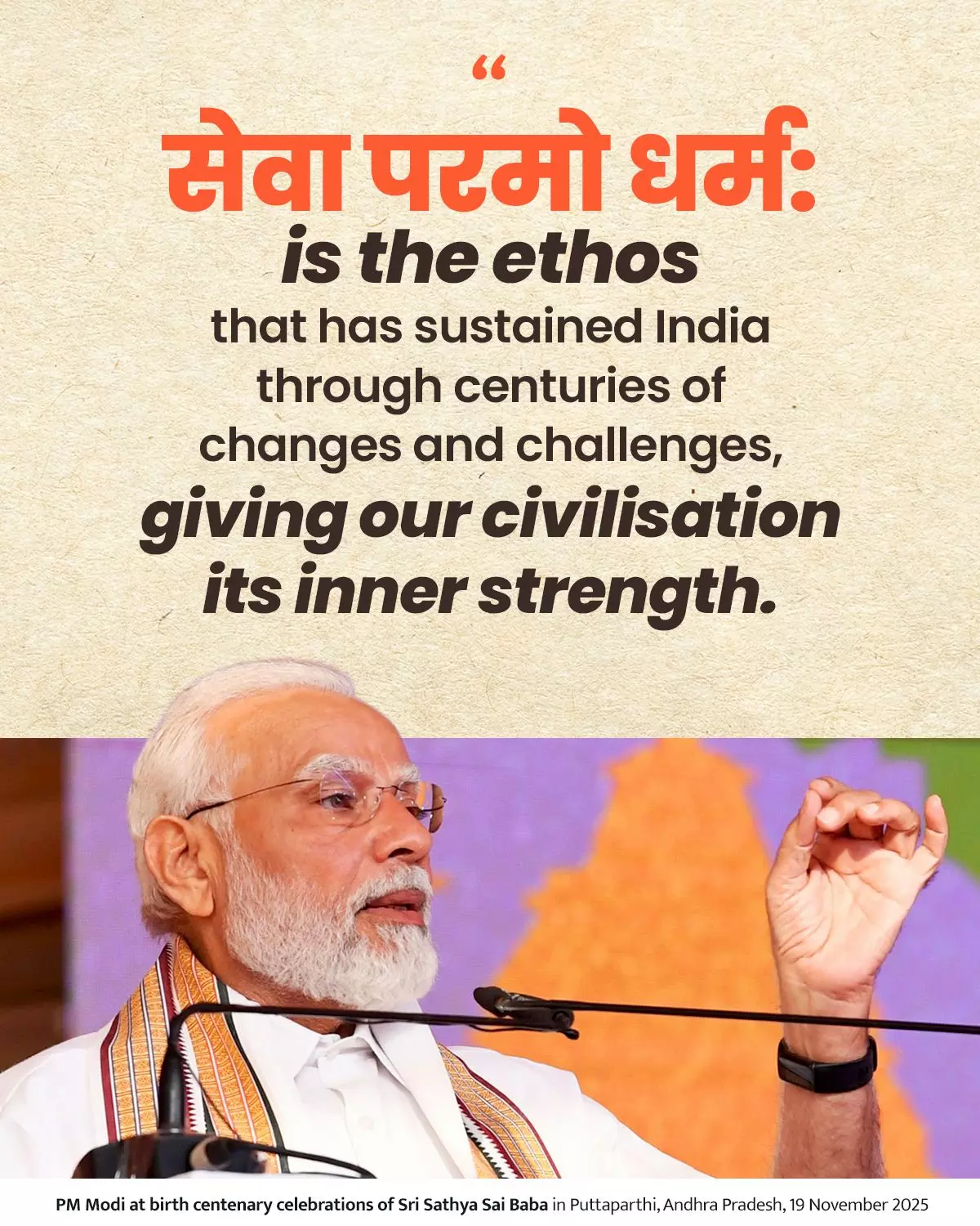 सेवा परमो धर्म: is the ethos that has sustained India through centuries of changes and challenges, giving our civilisation its inner strength.