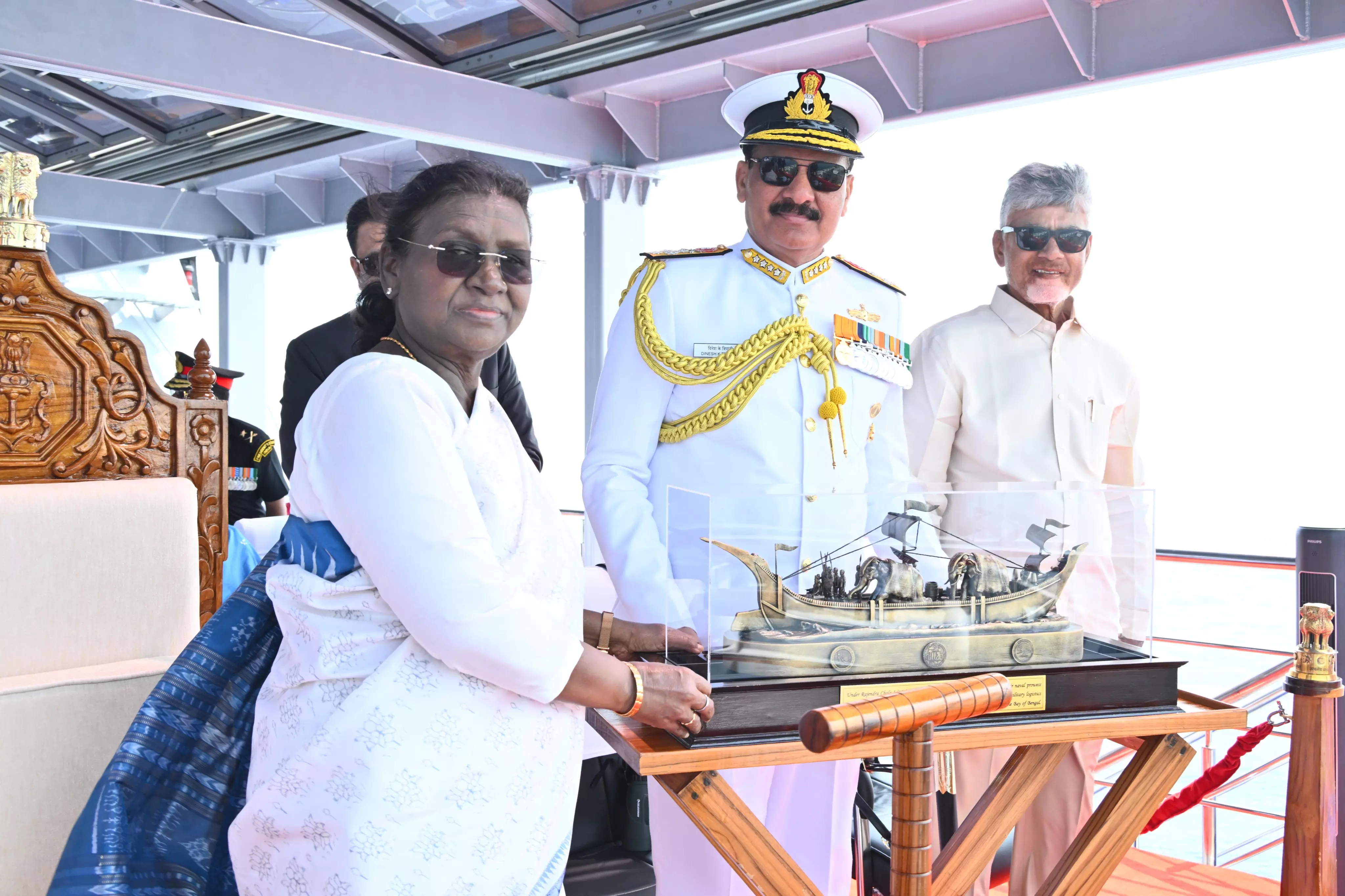 Visakhapatnam: President Droupadi Murmu and Andhra Pradesh Chief Minister N. Chandrababu Naidu watched the three dimensional prowess of the Indian Navy at the International Fleet Review held at the anchorage, 22km off the Visakhapatnam shore, on Wednesday morning.