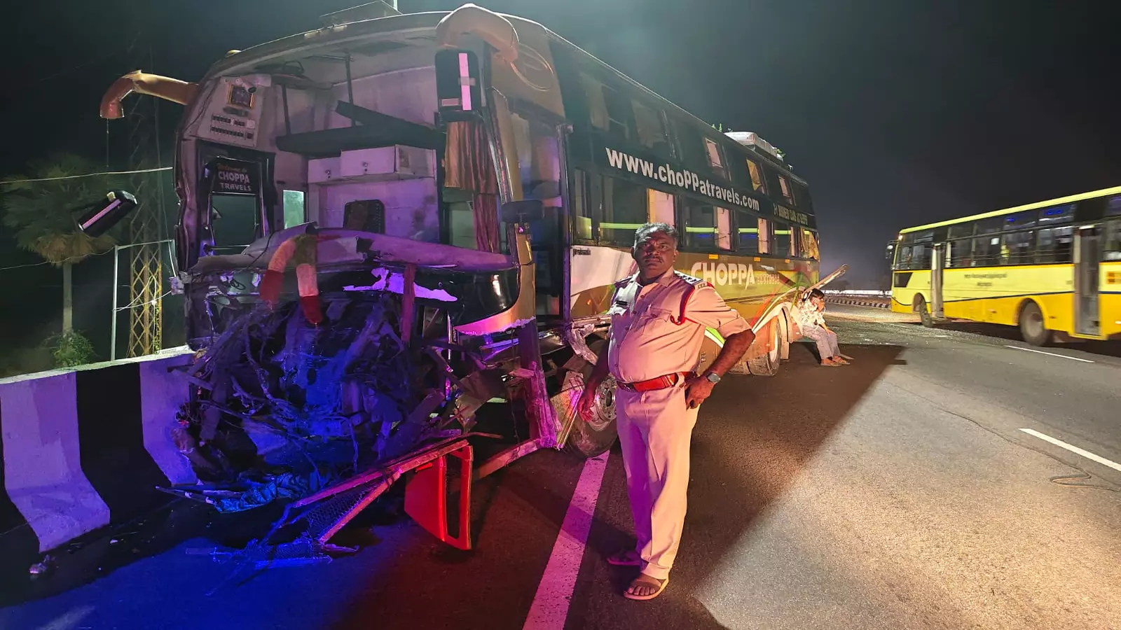 According to police, the bus was en route from Bengaluru to Tirupati with around 30–34 passengers on board when the mishap occurred at about 4 a.m. The driver allegedly attempted to overtake a lorry ahead but ended up colliding with it from behind.