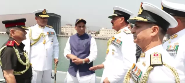 Visakhapatnam: Defence Minister Rajnath Singh, along with Chief of Defence Staff General Anil Chauhan and Navy chief Admiral Dinesh K Tripathi, on Friday inspected the advanced stealth frigate INS Taragiri in Visakhapatnam.The Defence Minister, earlier in the day, commissioned the advanced stealth frigate INS Taragiri, marking a significant enhancement to the Indian Navy's capabilities.