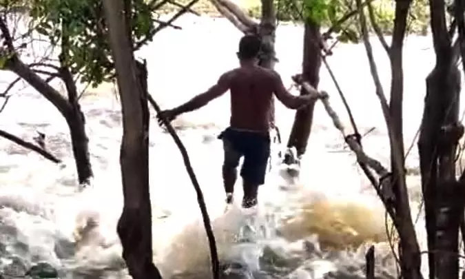Residents of 3 AP Villages Risk Lives to Cross Stream on Makeshift Log Bridge