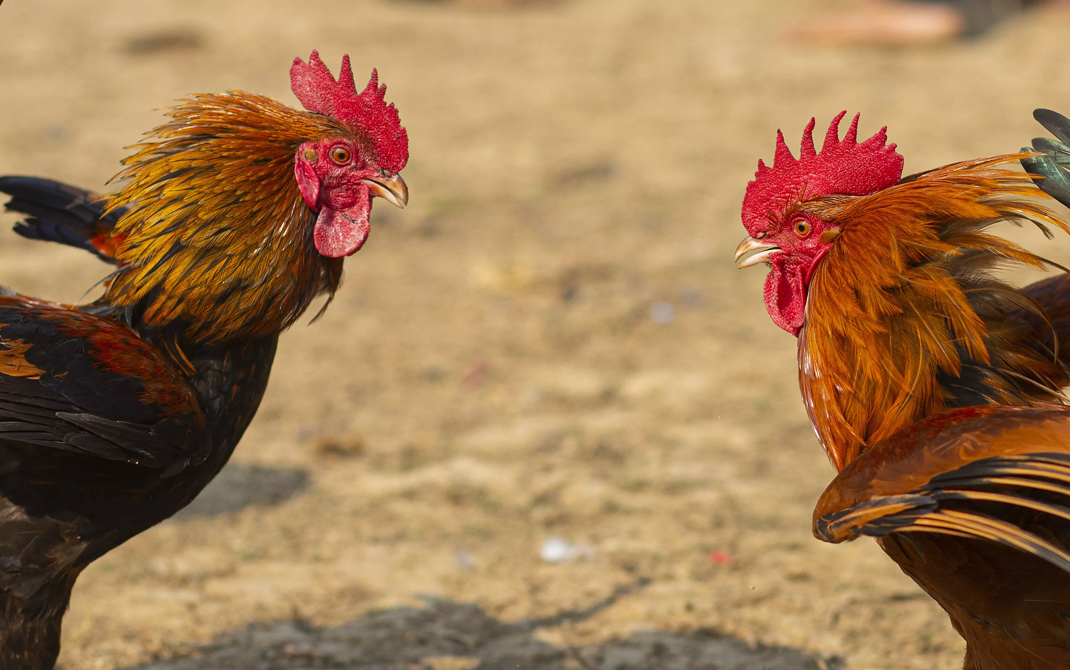 Roosters wait to attack each other during a cockfight. (Photo: AP)