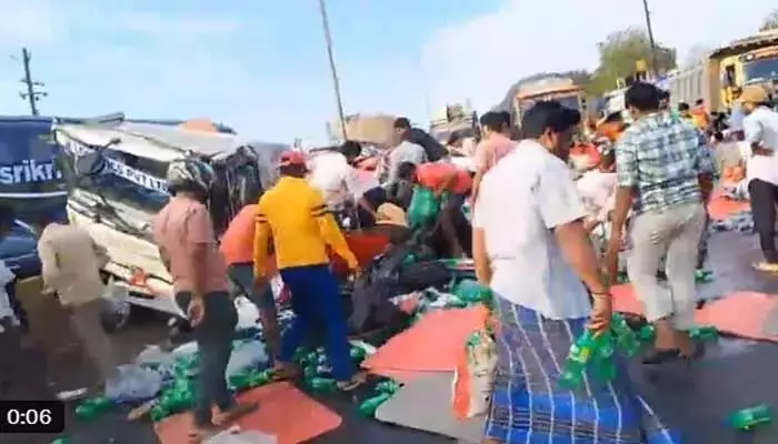 Soft Drink Bottles Looted after Lorry Accident in Nellore, Video Goes Viral