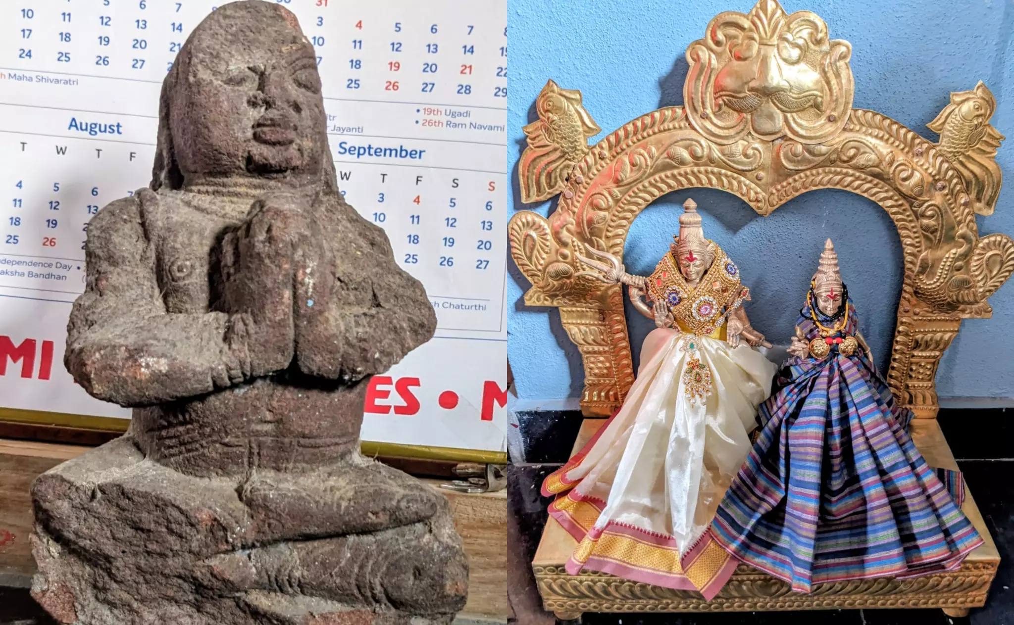 One idol has been identified as that of Shiva and Parvati. However, details of the second idol are not available.