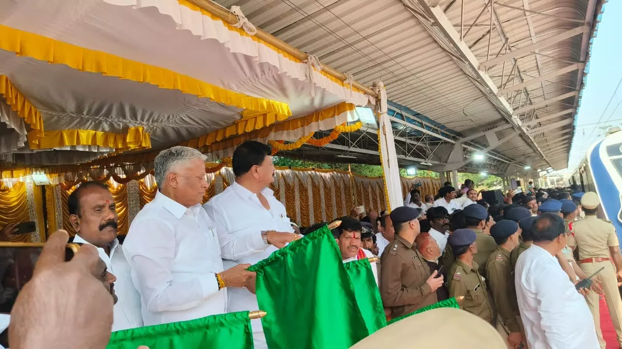 Minister for state for railways Veeranna Somanna flags off the Vande Bharat Express at Hindupur (Image:DC)
