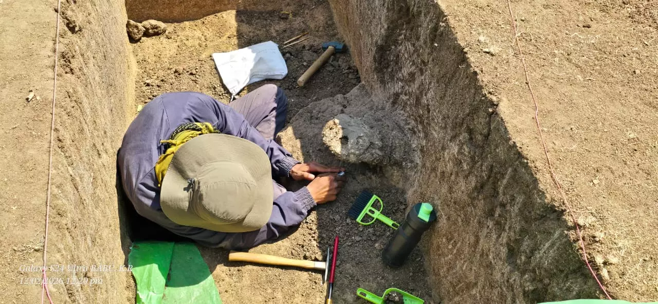 Ballari: Archaeologists excavating the prehistoric site at Garudamule in Tekkalakote made another significant find on Thursday, uncovering a human skull on the concluding day of the excavation.