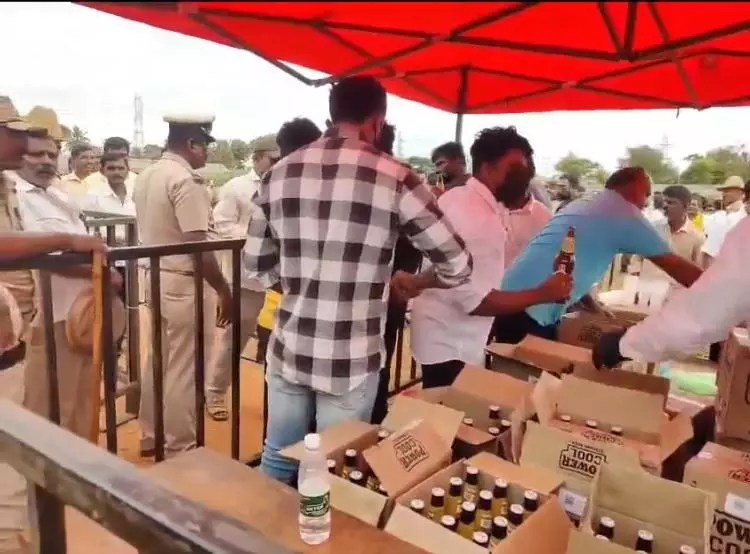 When liquor was served to the attendees, policemen stood mute spectators. The organisers had engaged some people to distribute liquor while the people at the gathering queued up to collect the wine bottles.