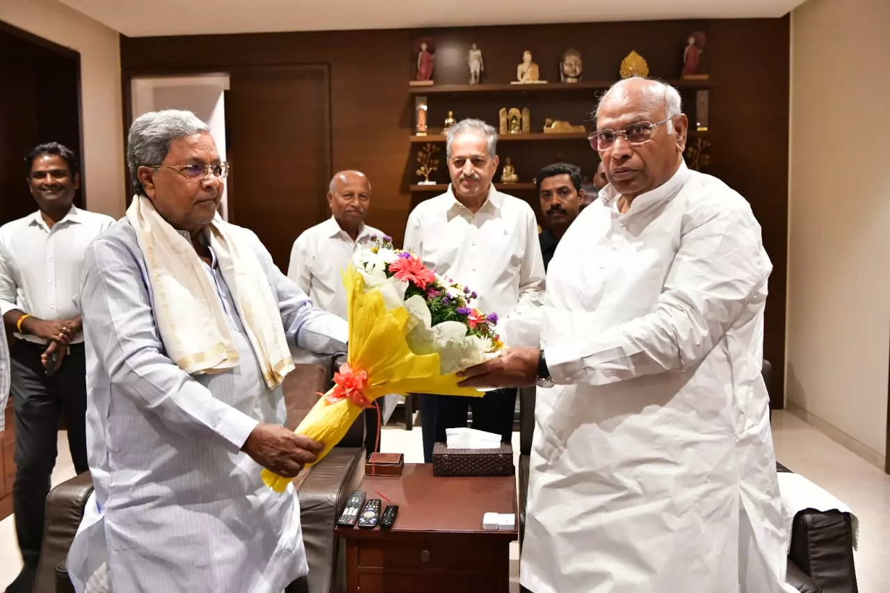 BENGALURU: Chief Minister Siddaramaiah on Saturday evening met president of All India Congress Committee Malikarjun Kharge at the latter’s residence in Sadashivanagar in Bengaluru city where both the leaders were engaged in a closed door meeting for about an hour.