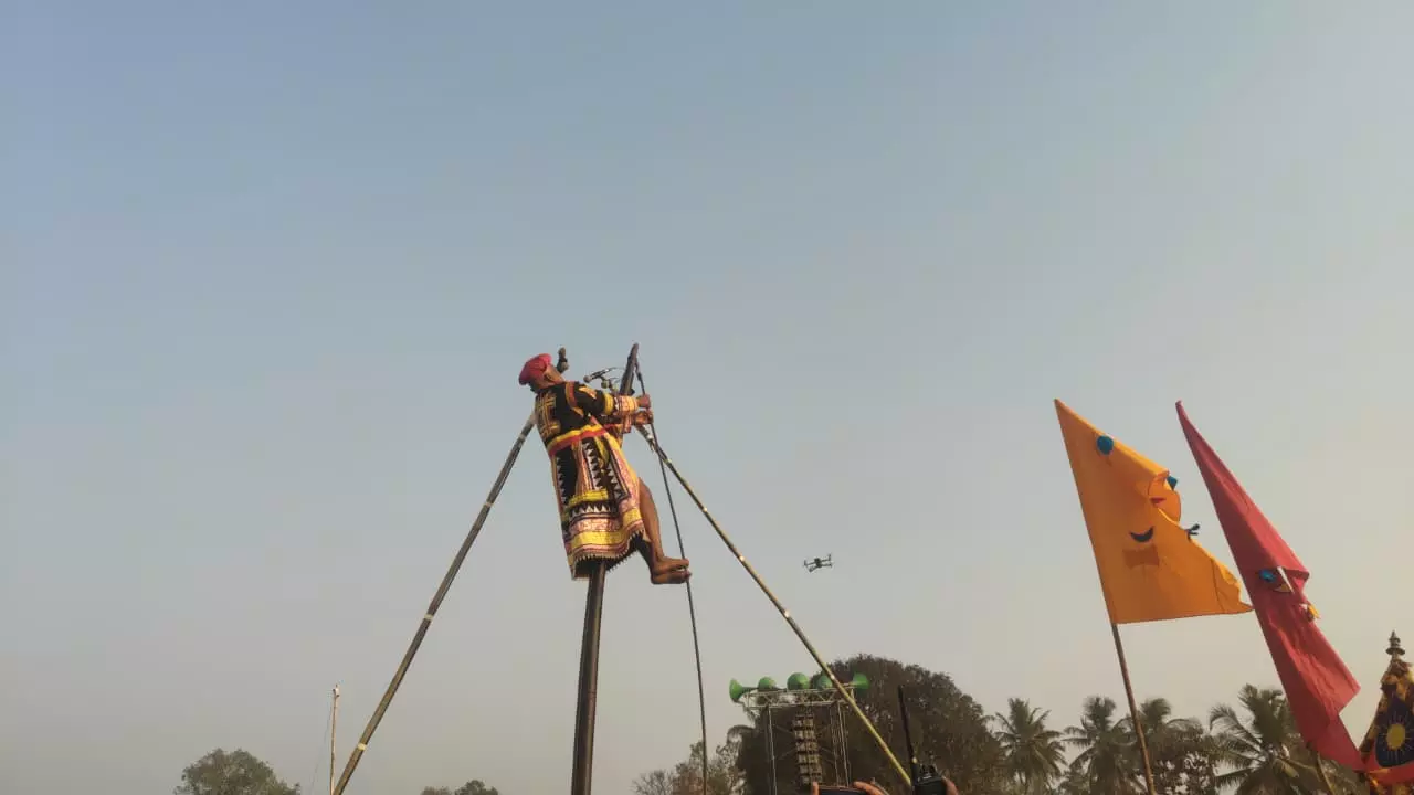 After pausing briefly and gazing at the sky, he uttered the word “Saddale” and proclaimed “Sampayitale Parak”, before leaping down from the bow. Members of the Gorava community standing below caught him with a blanket, in keeping with tradition.