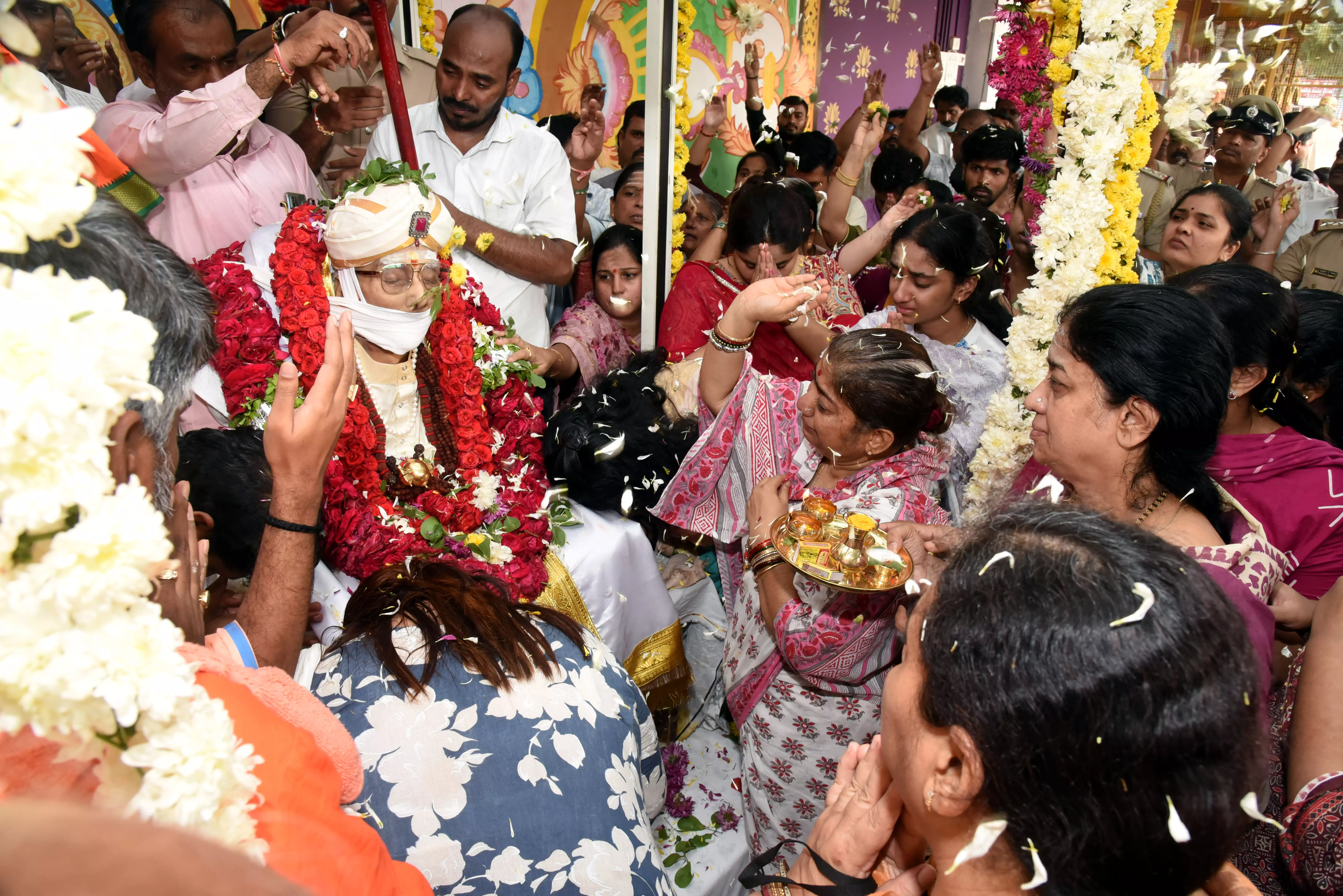 Rituals were led by Sri Abhinava Parvateshwara Shivacharya of the Brahmamatha, Belagumpi, and Dr. Rajashekar Shivacharya of the Chaudeshwari Math, marking the formal passing of leadership — a role ceremonially conferred on Chiranjeevi Doddappa Appa few years ago.