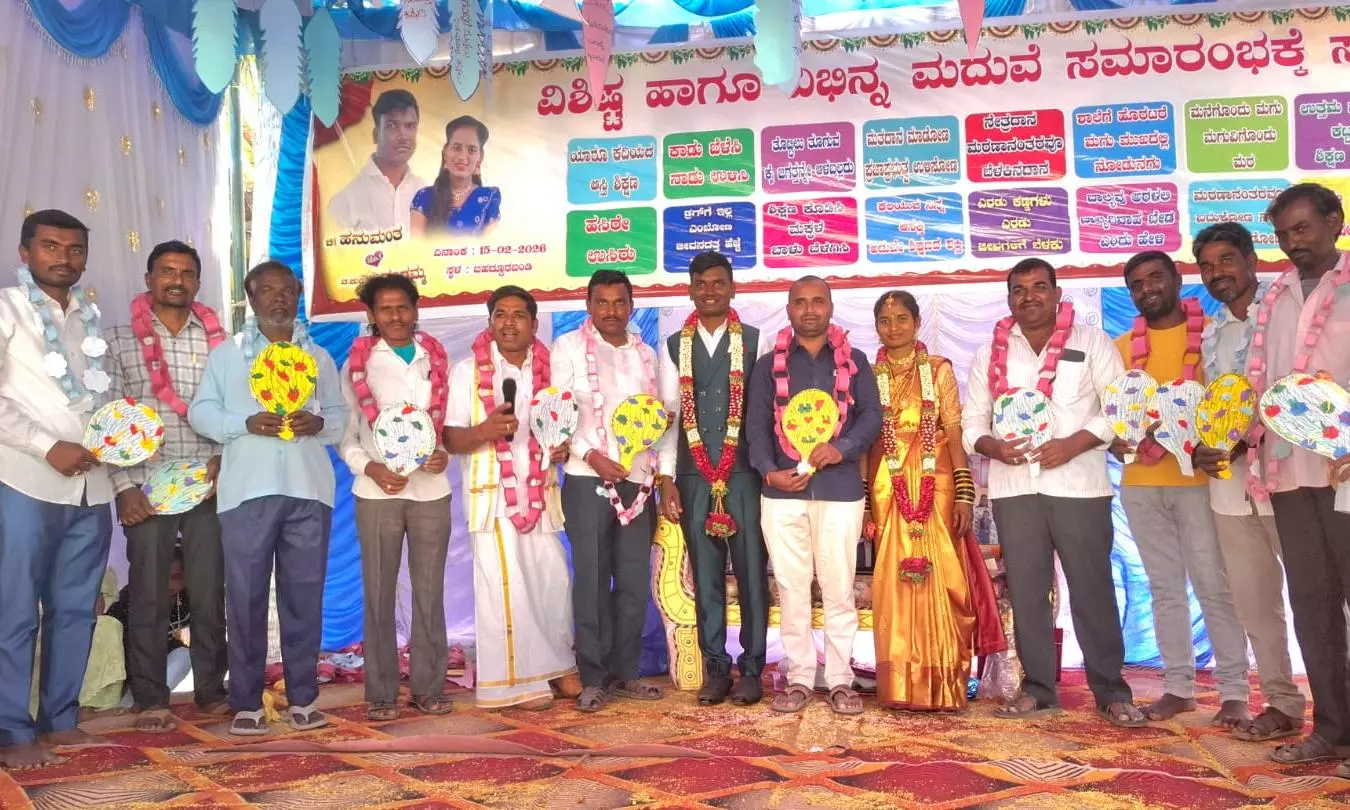 When the wedding date of Hanumanthappa and Gangamma was fixed for February 15, the village did not treat it as a private affair. The Gram Panchayat president and members, School Development Committee office-bearers and teachers stepped in with full support and resolved to turn it into a unique and socially meaningful event.