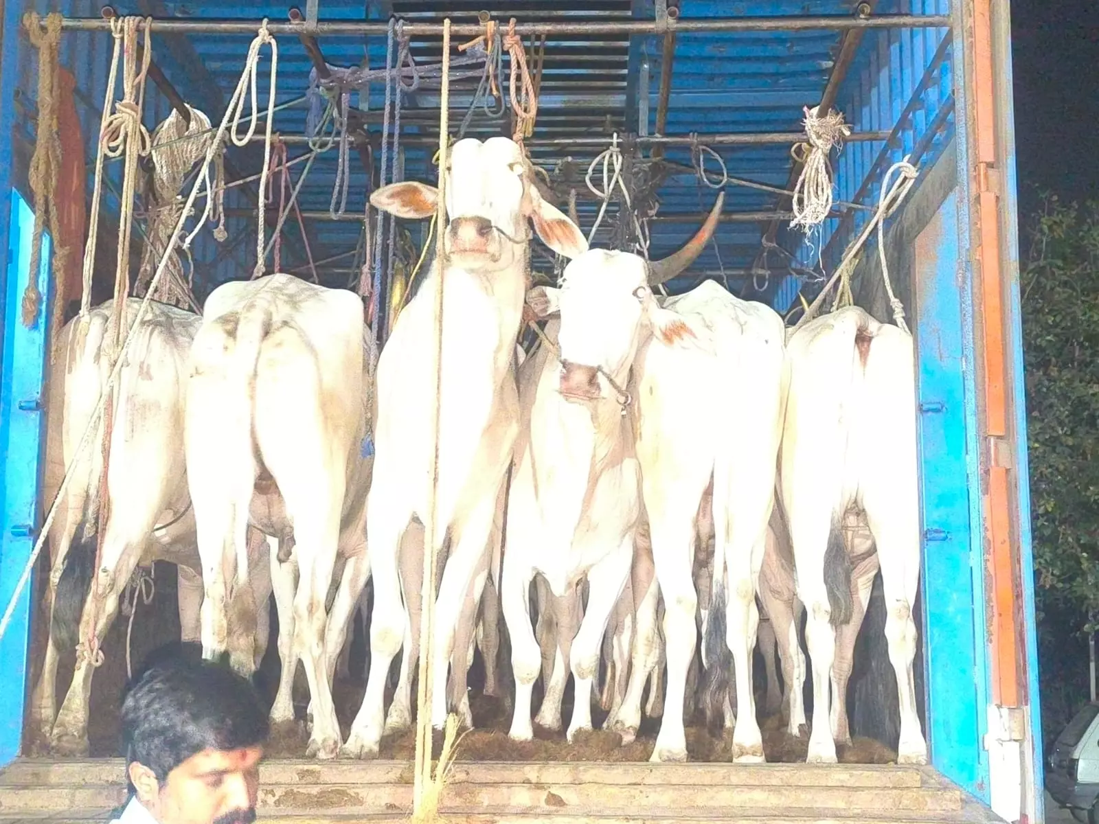 It was said that a case had been registered earlier with the Kyatsandra police in Tumakuru district for illegally transporting cattle to a slaughterhouse in the same vehicle.