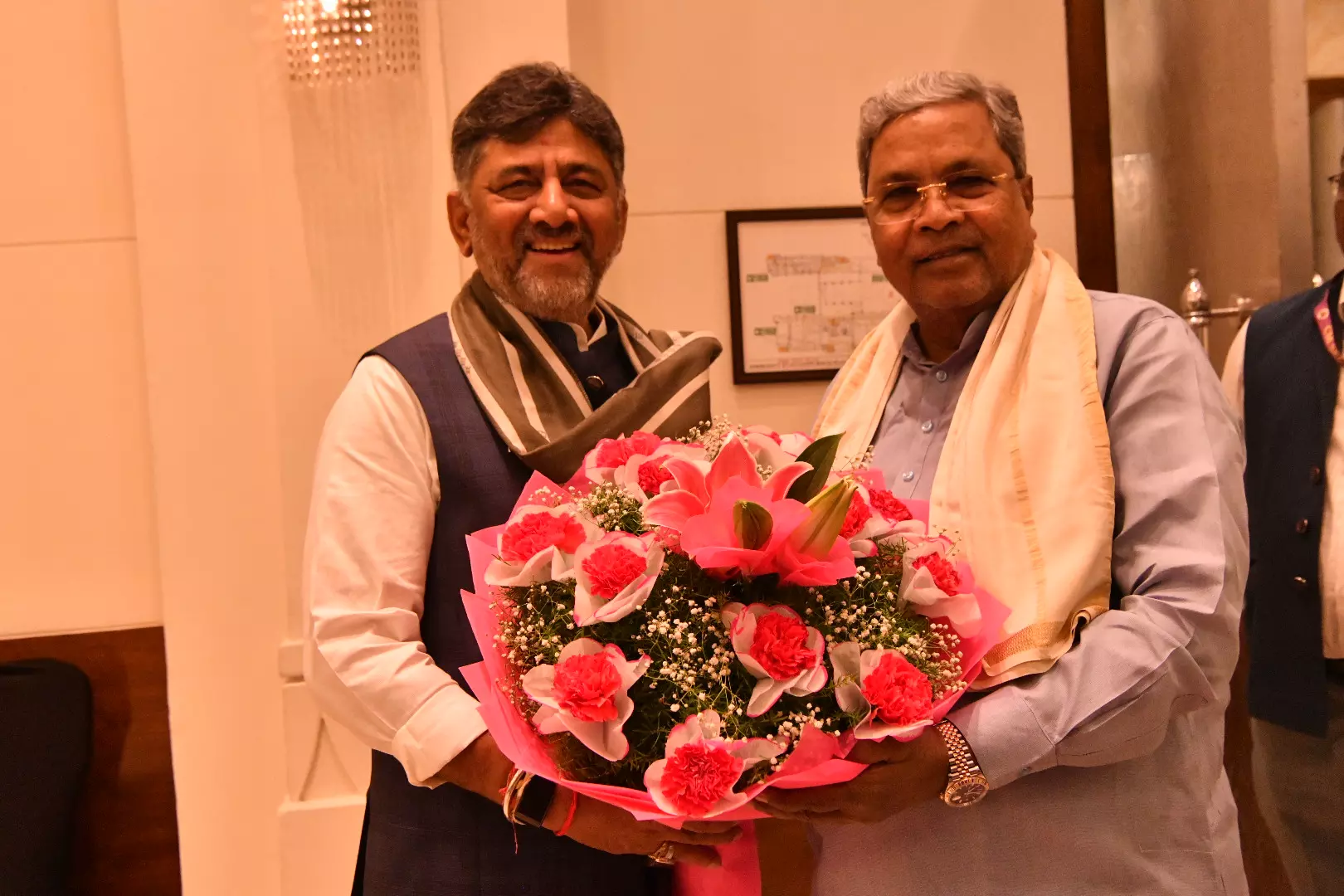 BENGALURU: Deputy Chief Minister D.K. Shivakumar completed six years as president of Karnataka Pradesh Congress Committee (KPCC) on Tuesday. While congratulating Shivakumar on completion of 6 years, Chief Minister Siddaramaiah quipped “Shivakumar is junior to me" and stated "a bright future awaits him (Shivakumar).”
