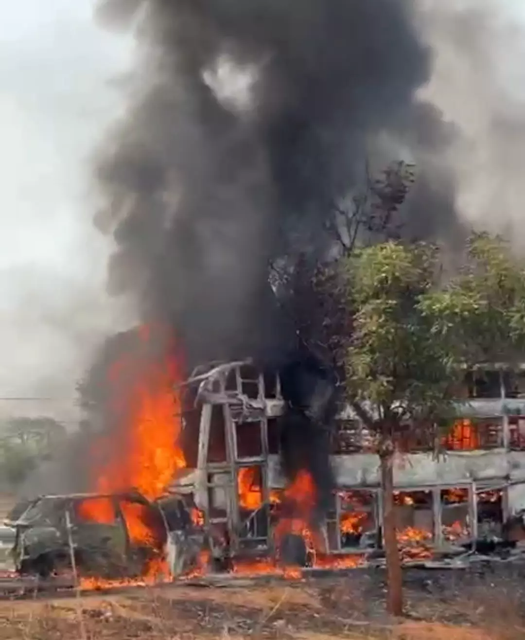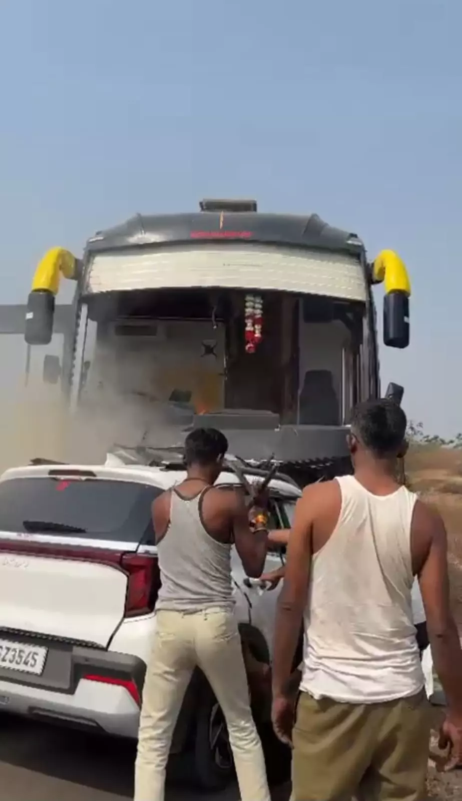 The impact of the collision was so severe that both vehicles caught fire.