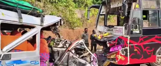 Udupi: Three persons were killed on the spot and several others injured in a head-on collision between a private bus and Toofan- a passenger vehicle on the National Highway near Kambala Cross in Miyaru village, under Karkala Town Police limits, on Friday, police said.