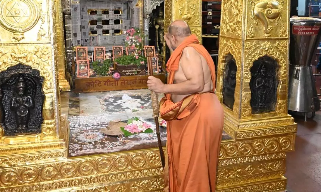 During his earlier Paryaya term, Sri Sugunendra Tirtha Swamiji launched several Gita-centric initiatives, including the Gita Lekhana Yajna and the inauguration of Gita Mandir near Sri Krishna Matha. His fourth Paryaya has been designated the Vishwa Gita Paryaya, under which he launched major global initiatives such as the Koti Gita Lekhana Yajna, encouraging at least one crore people to handwrite all 700 shlokas of the Gita and offer them to Lord Krishna.