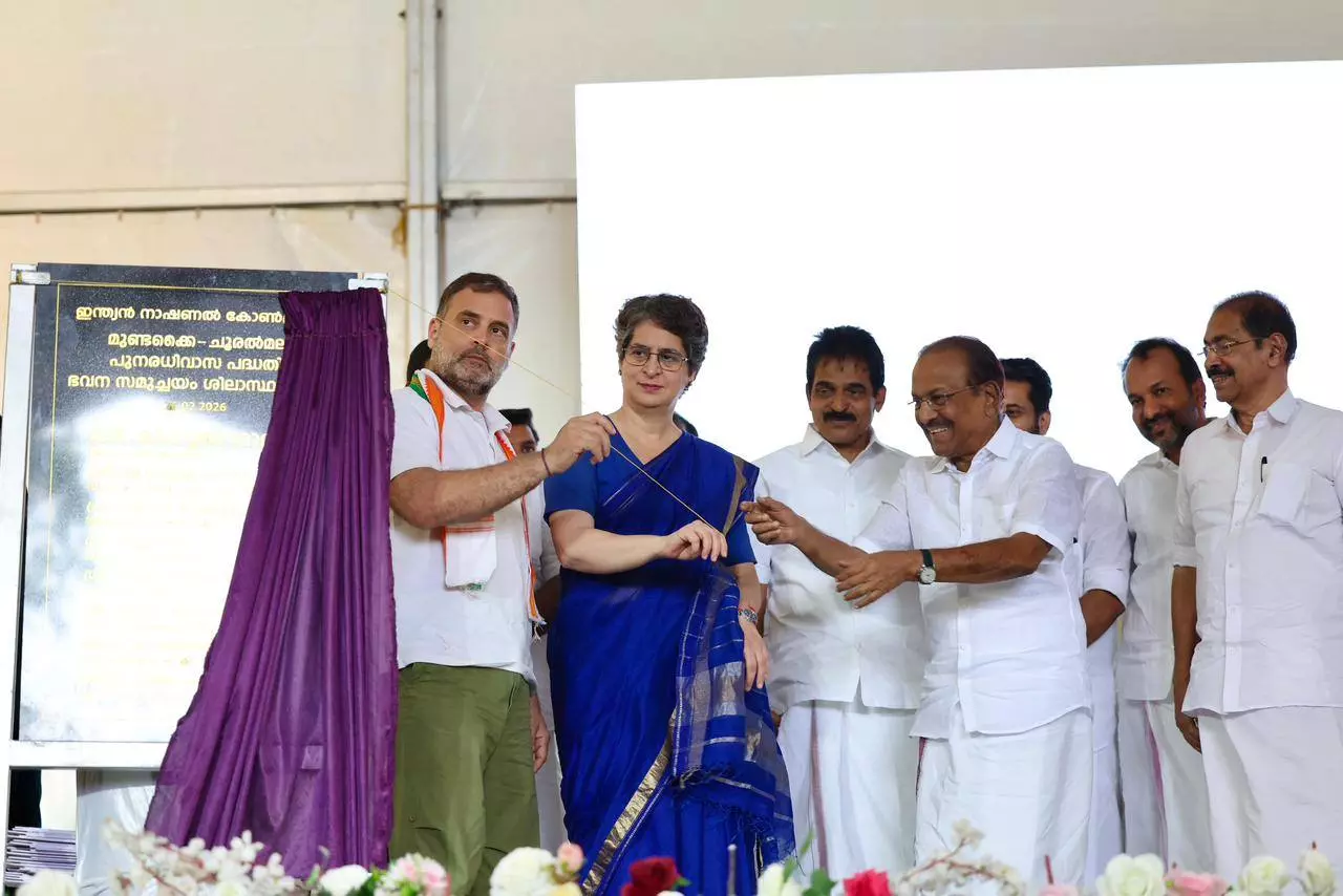 Opposition Leader in Lok Sabha Rahul Gandhi and Wayanad MP Priyanka Gandhi Vadra on Thursday laid the foundation stone for 100 houses being built by the Congress party for the survivors of the landslide.