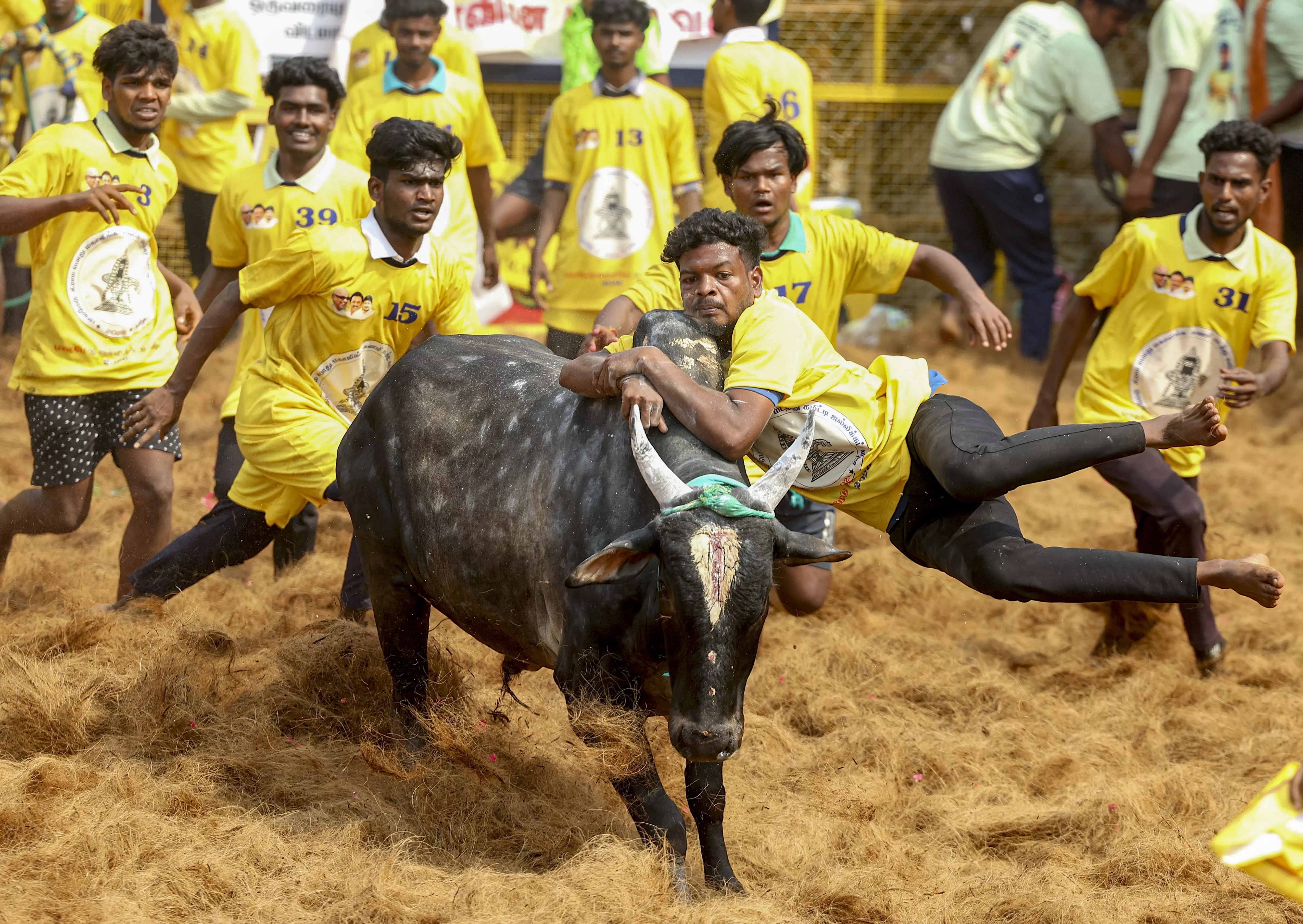 Jallikattu is a traditional bull-embracing sport held in Tamil Nadu during the Pongal harvest festival in the second week of January. The event involves trained bulls being released from a ‘vadi vassal’, with bull tamers attempting to hold on to the hump of the bull to win prizes.