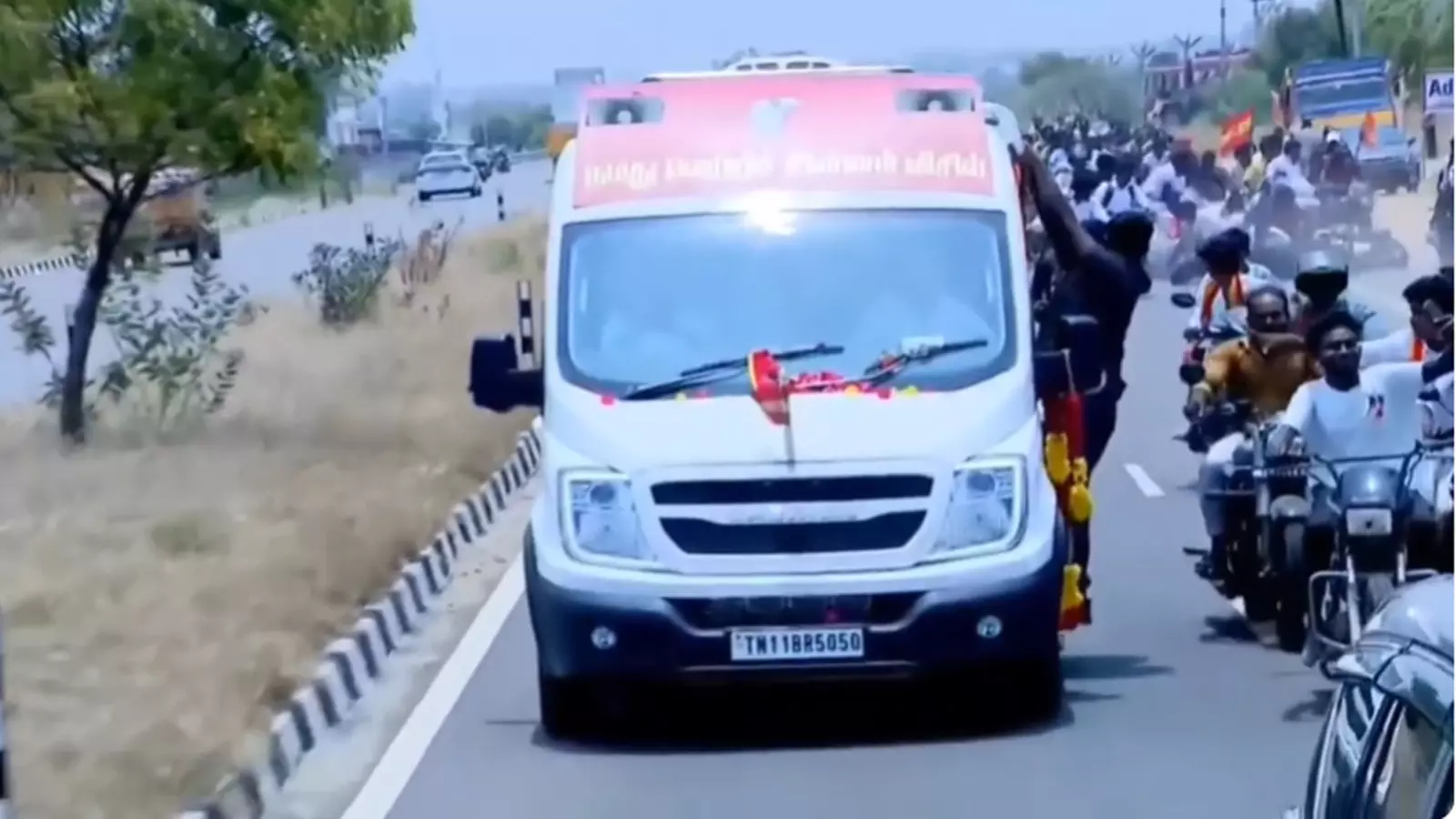 The actor-turned-politician TVK chief Vijay had arrived at Thoothukudi Airport from Chennai to participate in a public rally and campaign in support of the party's candidates in the Nellai and Thoothukudi districts. As he was proceeding along the Thoothukudi-Nellai four-lane highway, more than a hundred TVK volunteers on two-wheelers followed closely behind his convoy.