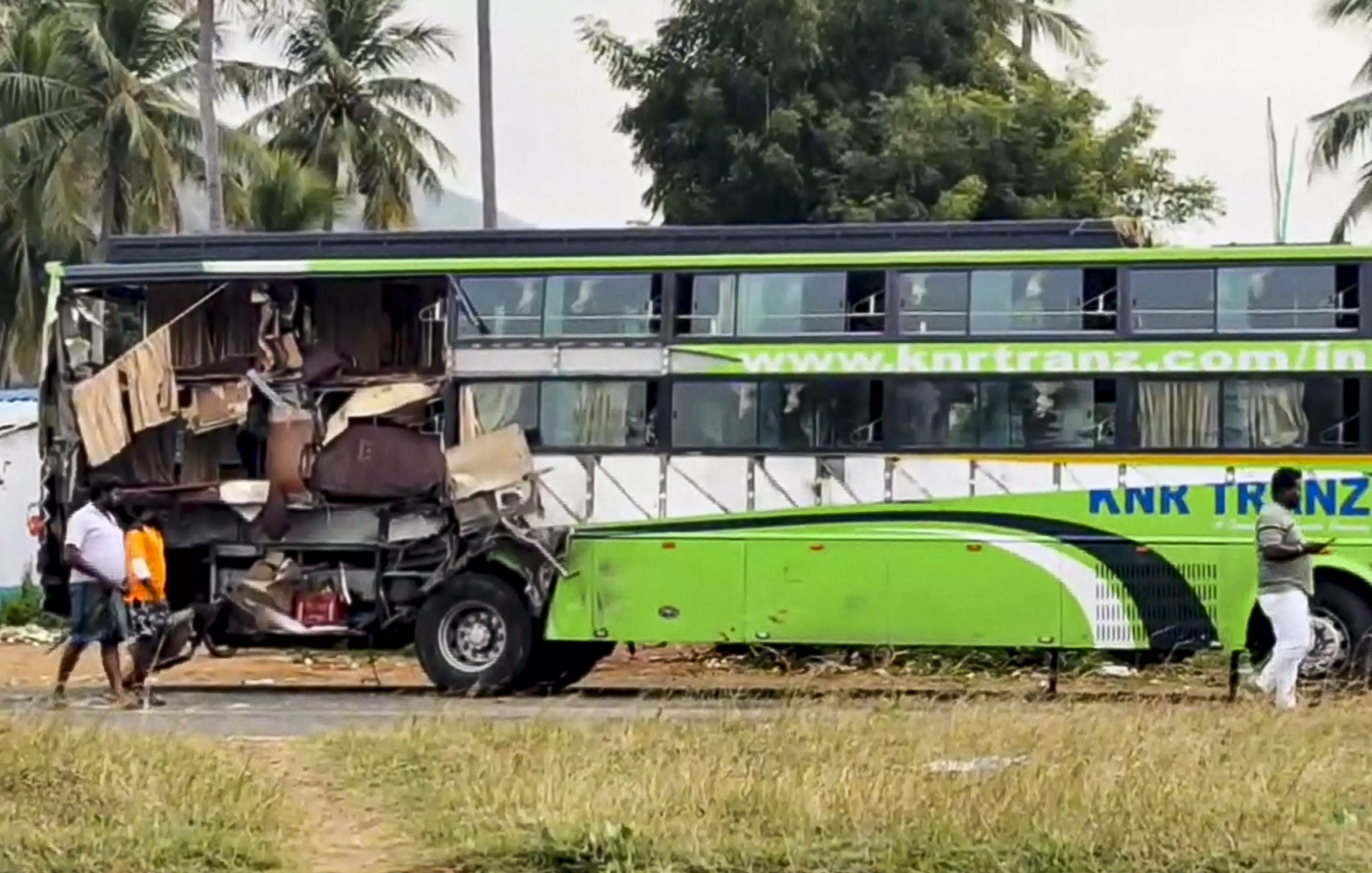 According to police sources, a private omnibus traveling from Chennai to Madurai had pulled over at a roadside tea stall in the Pallapatti suburban area. While the driver was away, another private omnibus-en route from Chennai to Marthandam-lost control and crashed into the rear of the parked vehicle with significant impact.