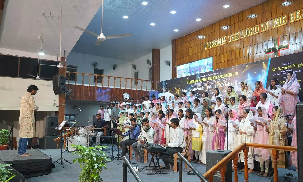 Hyderabad: Choristers lifted their voices in celebration as the 150-year-old Centenary Baptist Church at Clock Tower, Secunderabad, marked its sesquicentennial jubilee. A 150-member choir, accompanied by violins, percussion and keyboards, mesmerised the congregation during a special Worship Night held on Saturday evening as part of the celebrations.