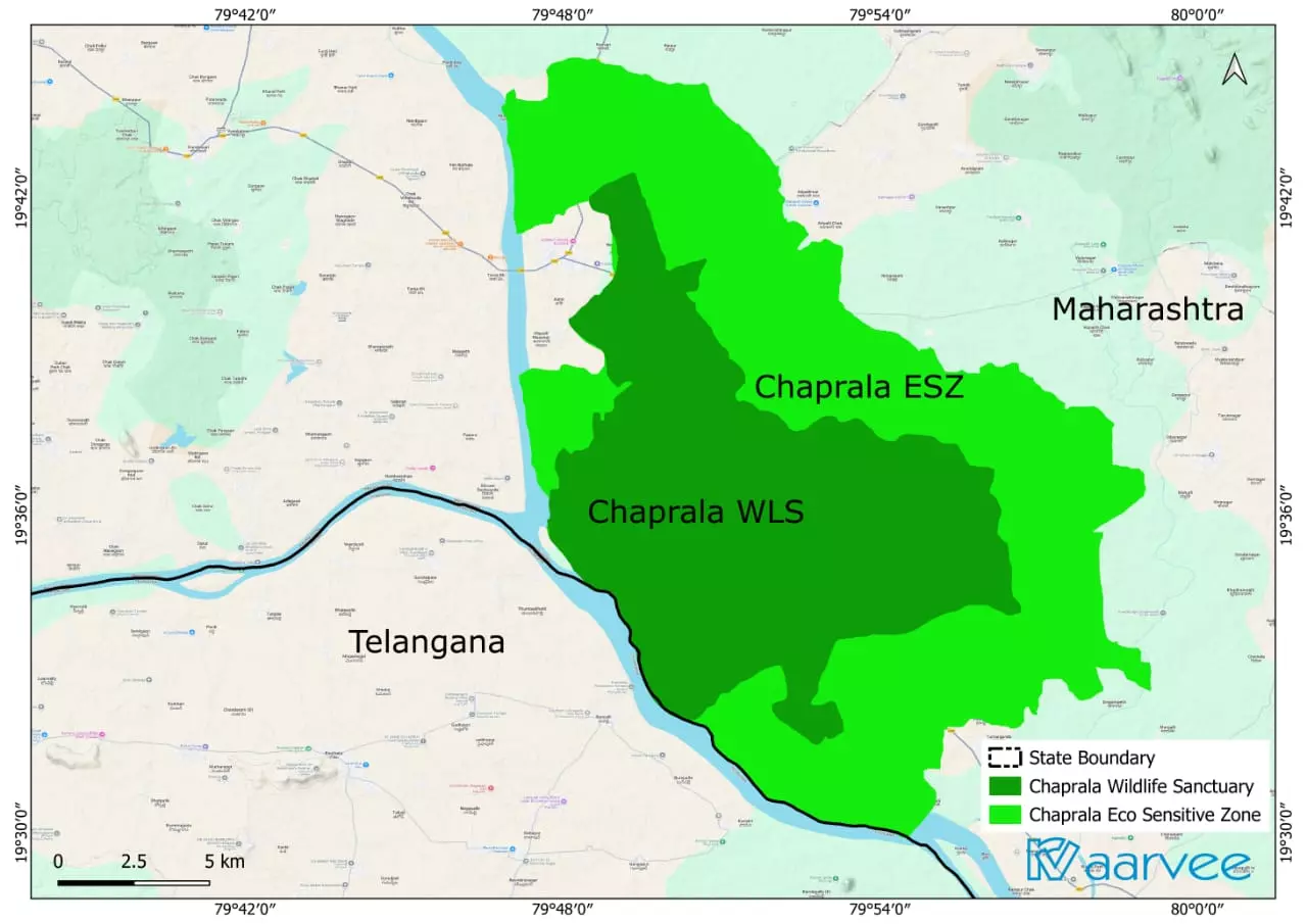 Map showing the proposed site for the Pranahita–Chevella barrage on the state border.